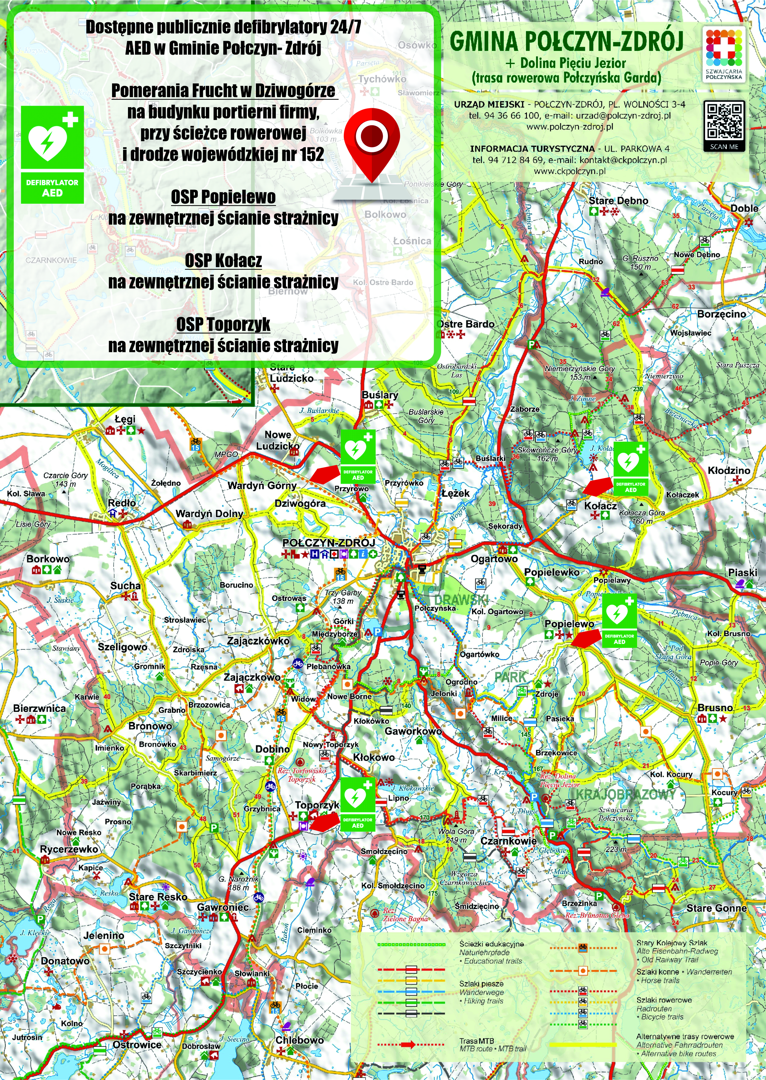 Dostępne publicznie defibrylatory 24/7 AED w Połczynie-Zdroju