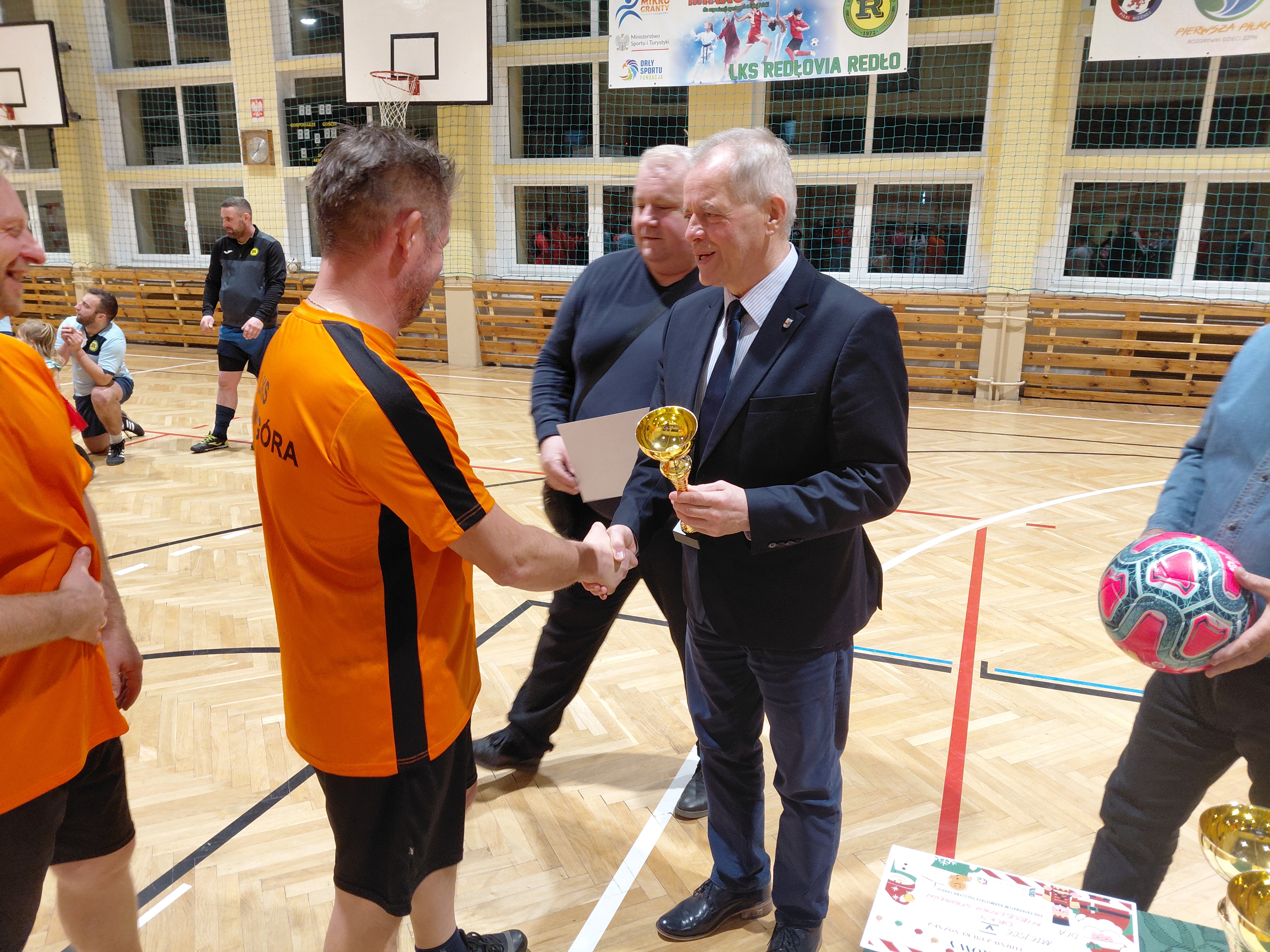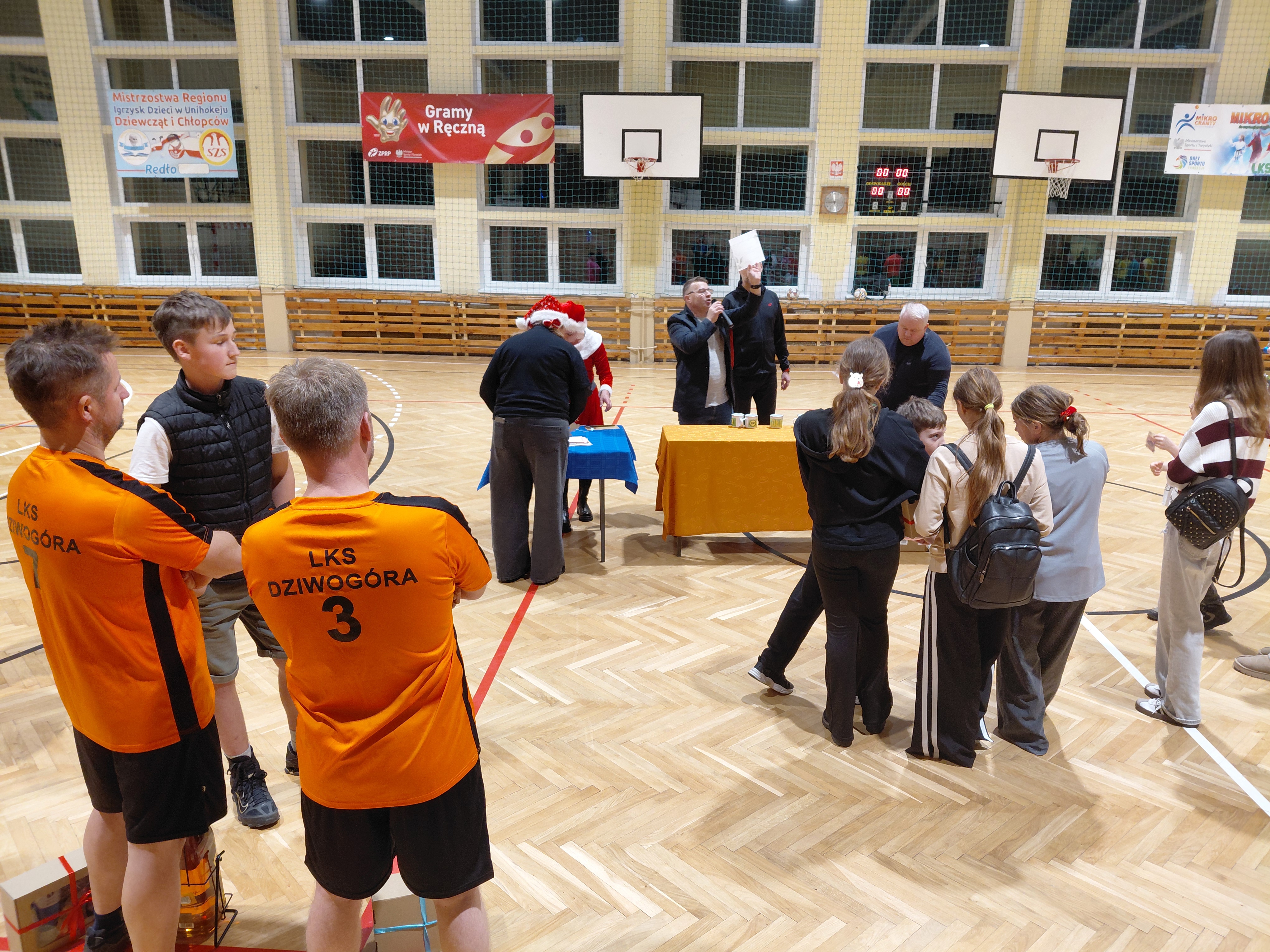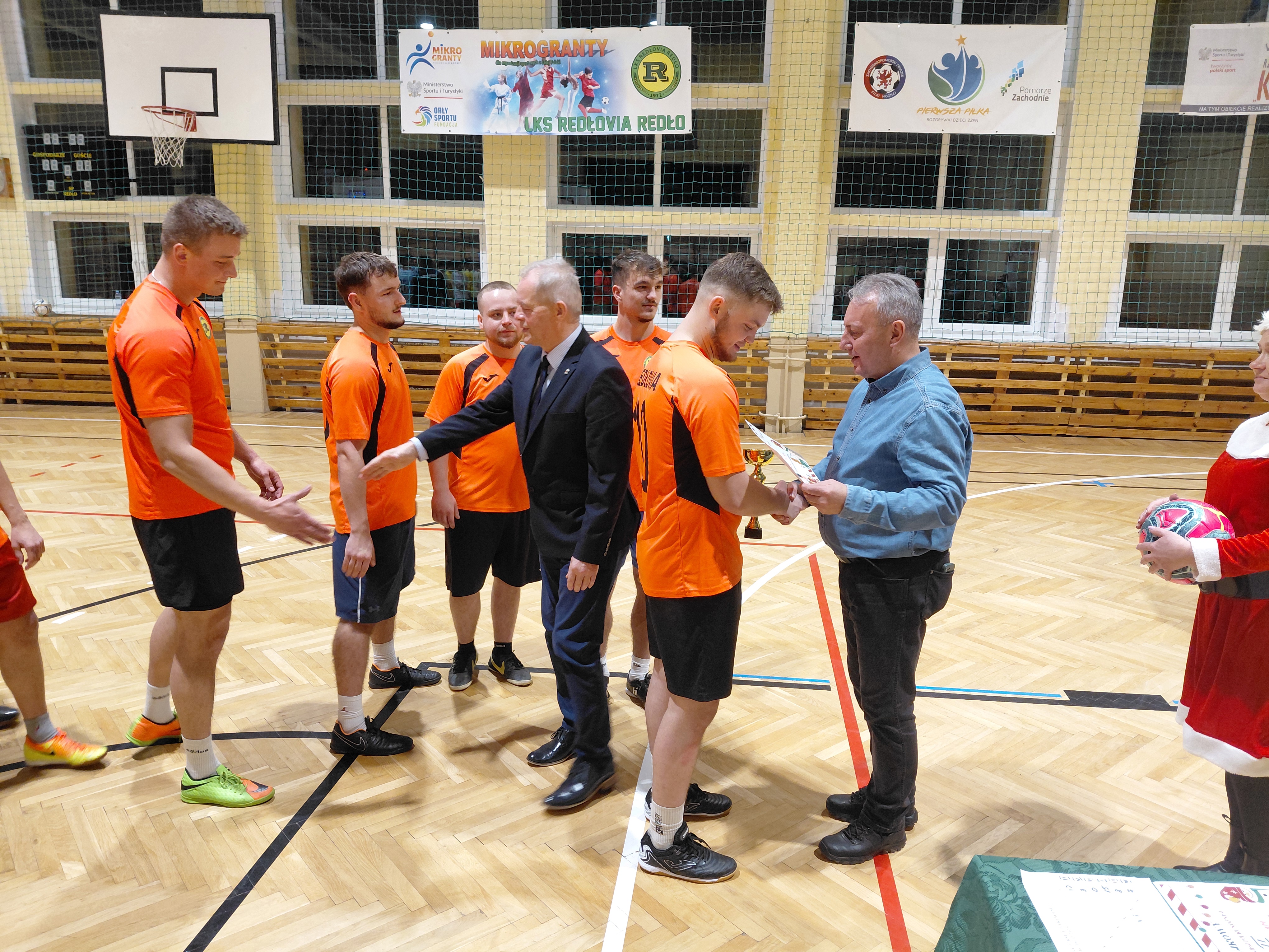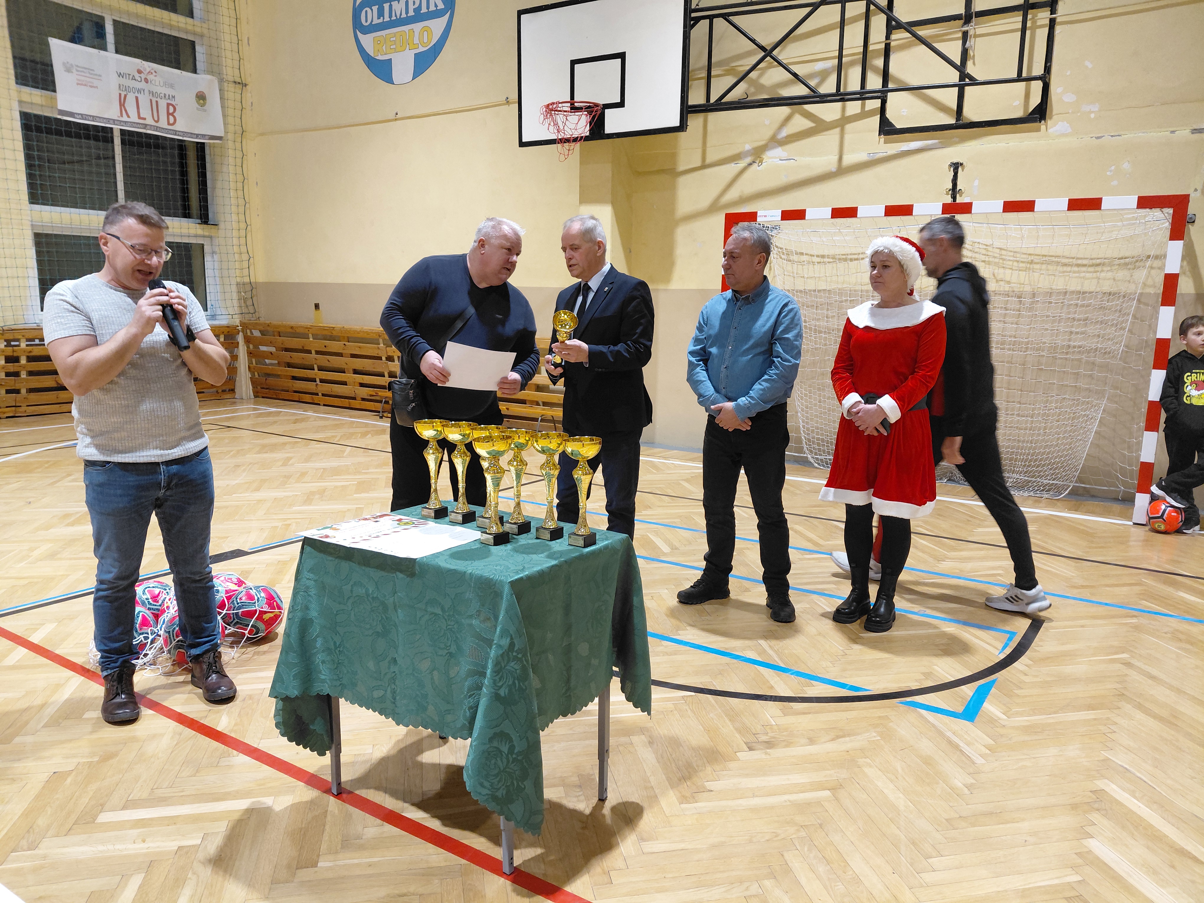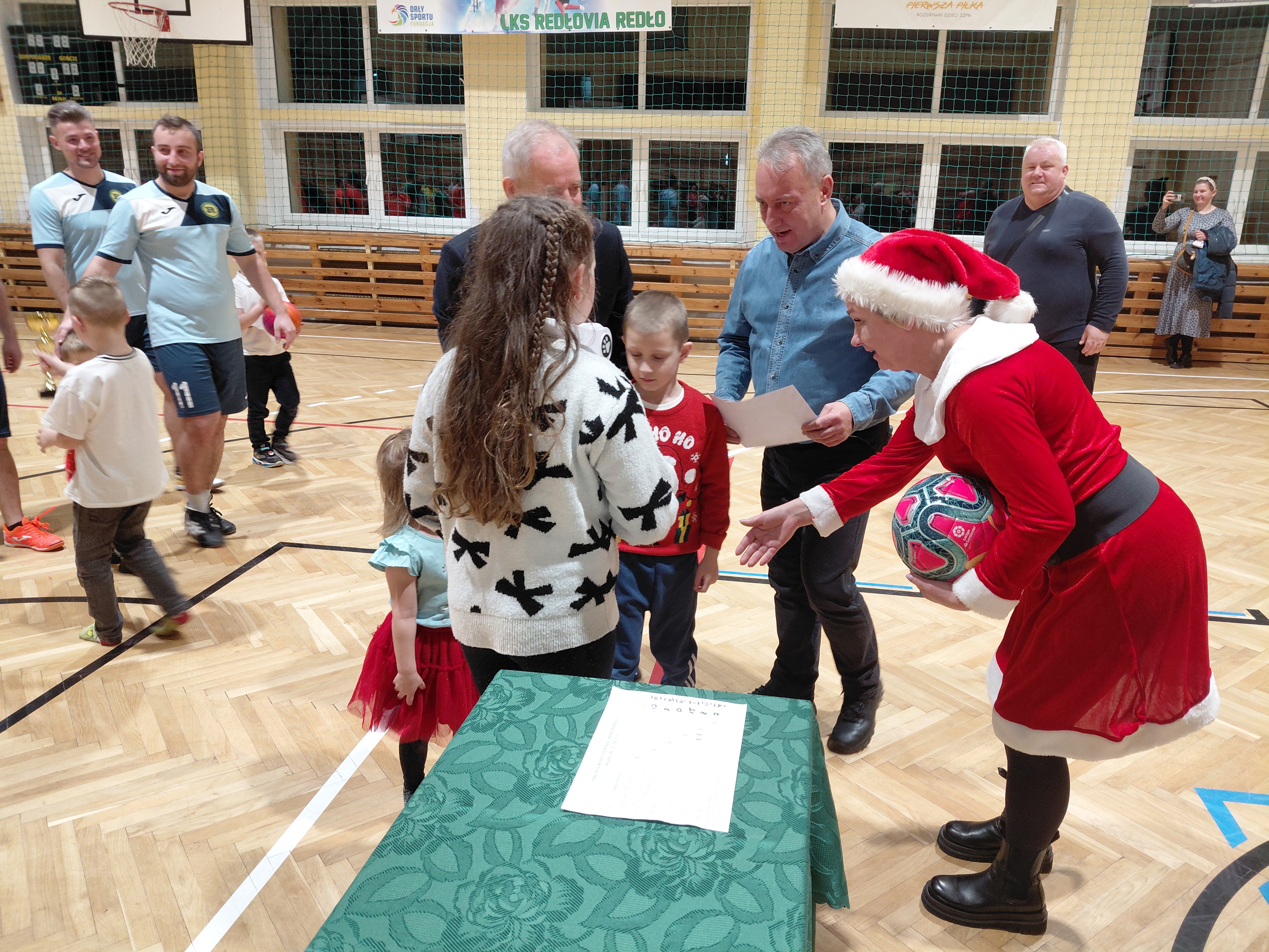 Sportowym emocjom towarzyszyły mikołajkowe atrakcje dla najmłodszych – dmuchańce, zdobienie pierniczków oraz tworzenie kartek świątecznych. Dzięki Paniom z KGW można było skosztować przepysznych domowych specjałów: pierogów, barszczu, krokietów, ciast, gofrów czy popcornu. Aromatyczny bigos przygotowany przez Dyrektor Szkoły w Redle we współpracy z Panem Radnym kusił wszystkich już od wejścia. Nikt nie wyszedł głodny!
