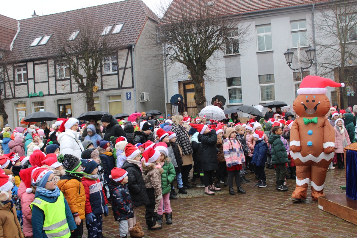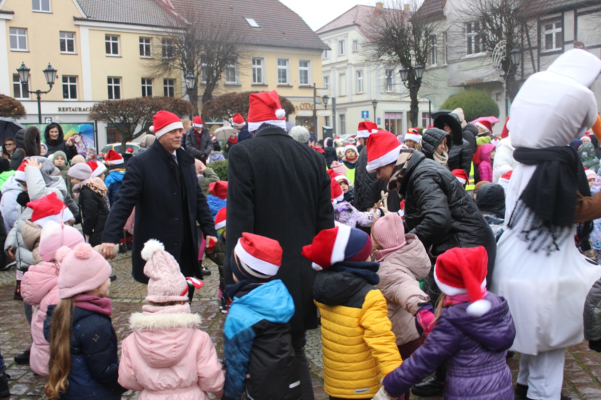 Gdy choinka już zabłysła, do wspólnej mikołajkowej zabawy dołączyli także mieszkańcy miasta. Wspólnie z Mikołajem i dziećmi zatańczyli wokół choinki, a najmłodsi otrzymali paczuszki ze słodkościami.