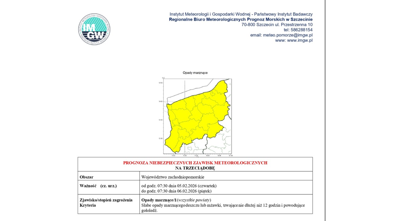 OSTRZEŻENIE METEOROLOGICZNE 02.02.2026 R.- 07.02.2026 R.