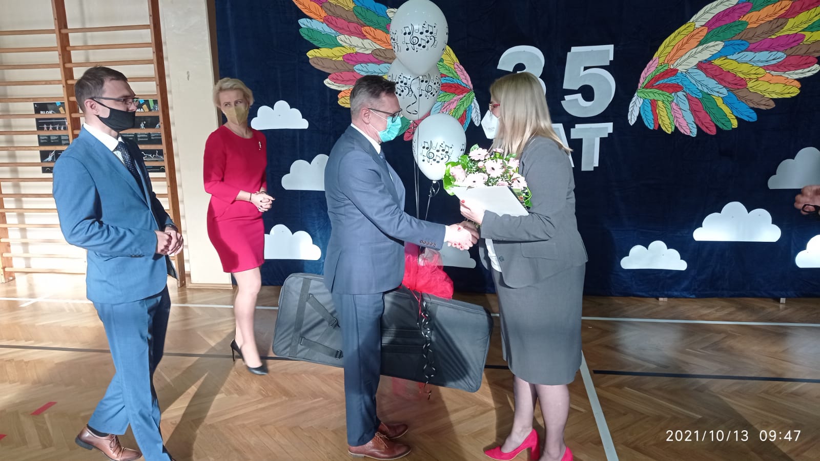 - Serdecznie dziękujemy wszystkim gościom za życzenia, które do nas spłynęły oraz przekazane prezenty. Dzięki nim nasi uczniowie w jeszcze większym stopniu będą mogli rozwijać swoje umiejętności, swoje talenty… „swoje skrzydła” – dodaje Pani Dyrektor.