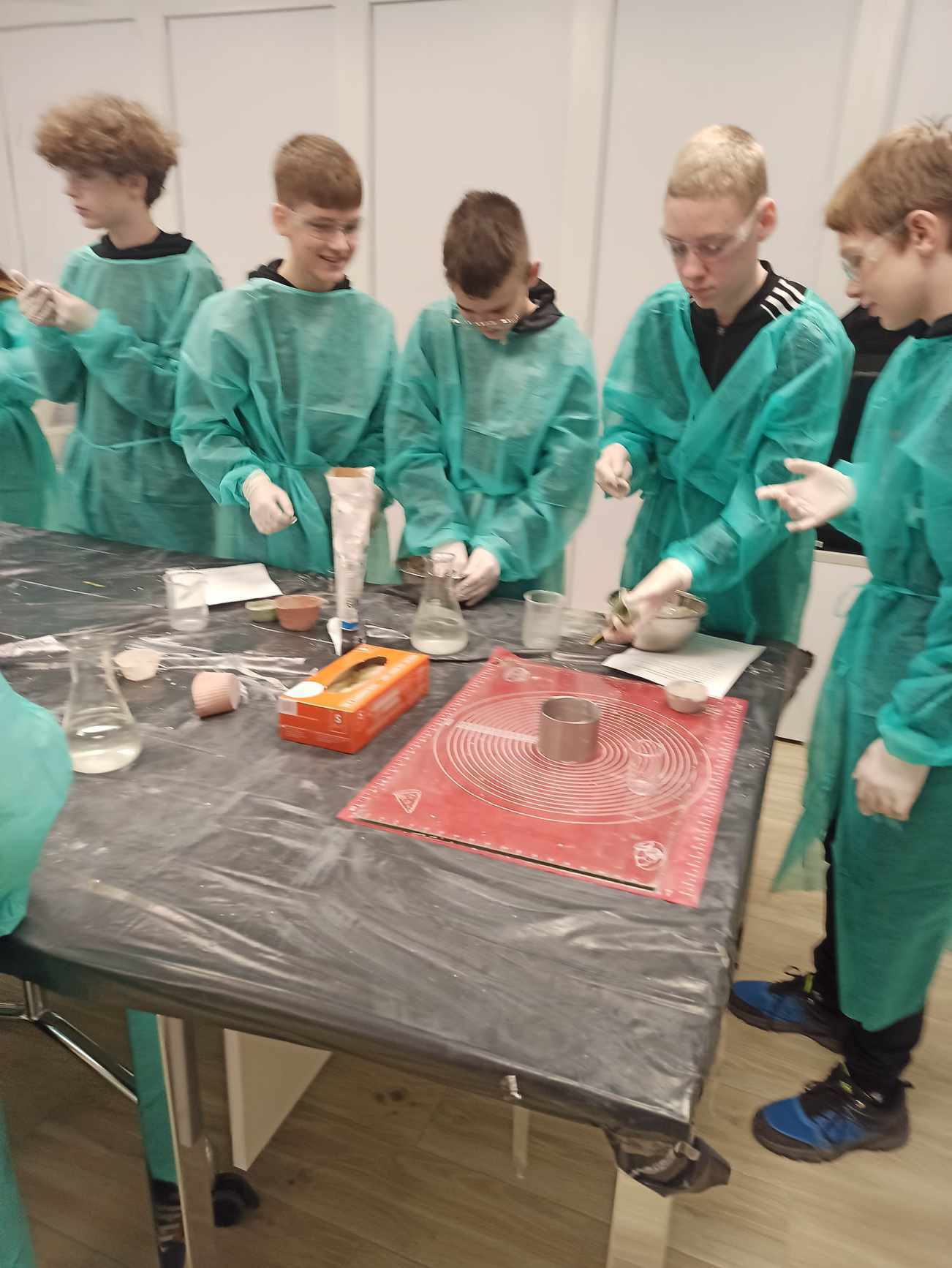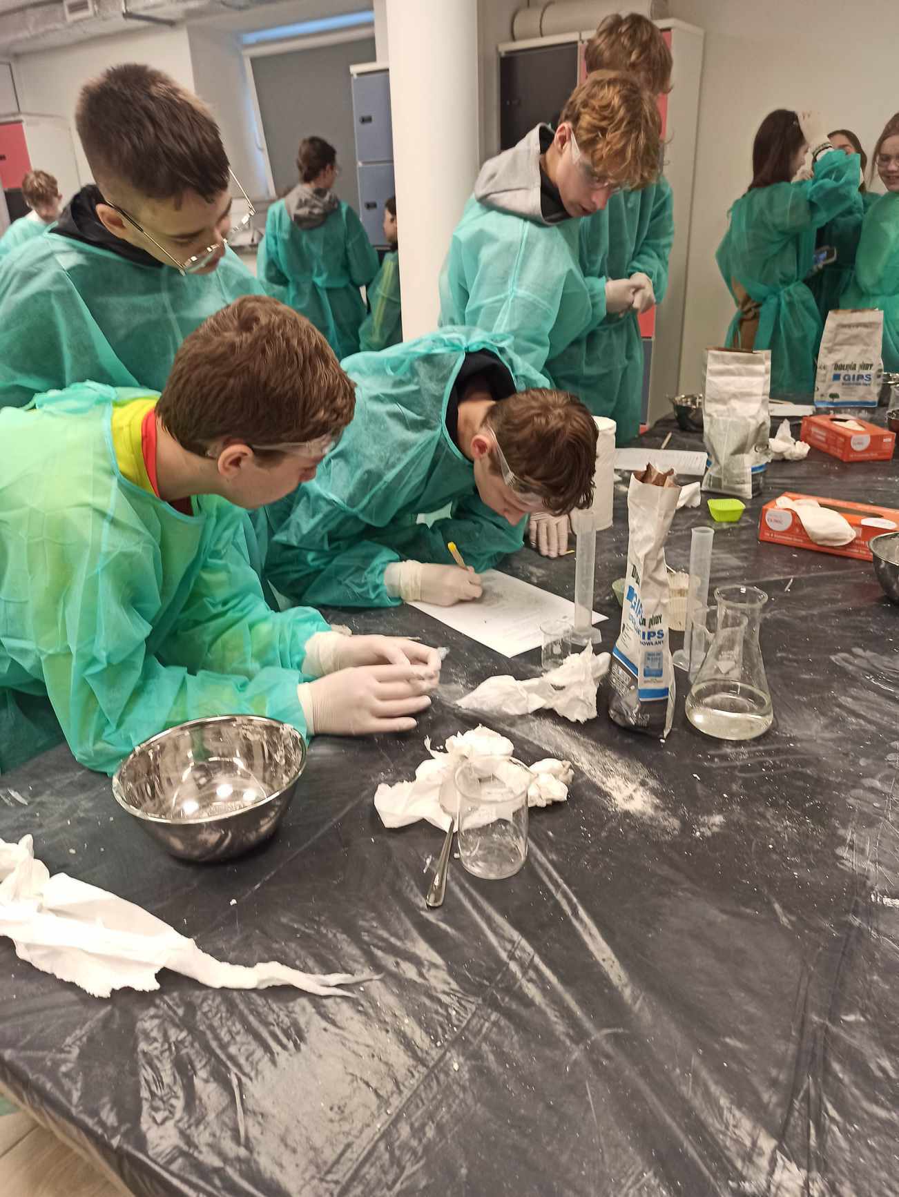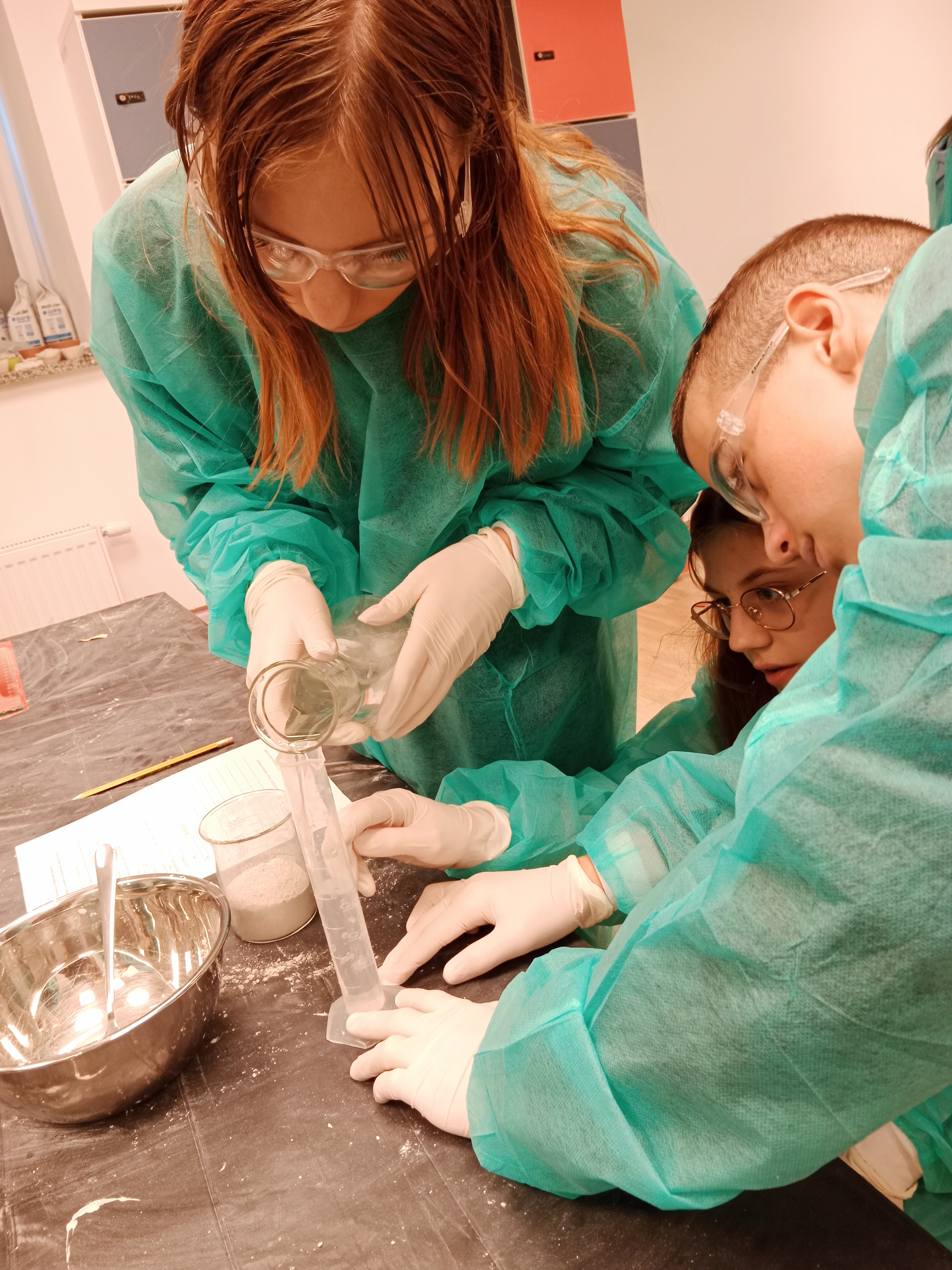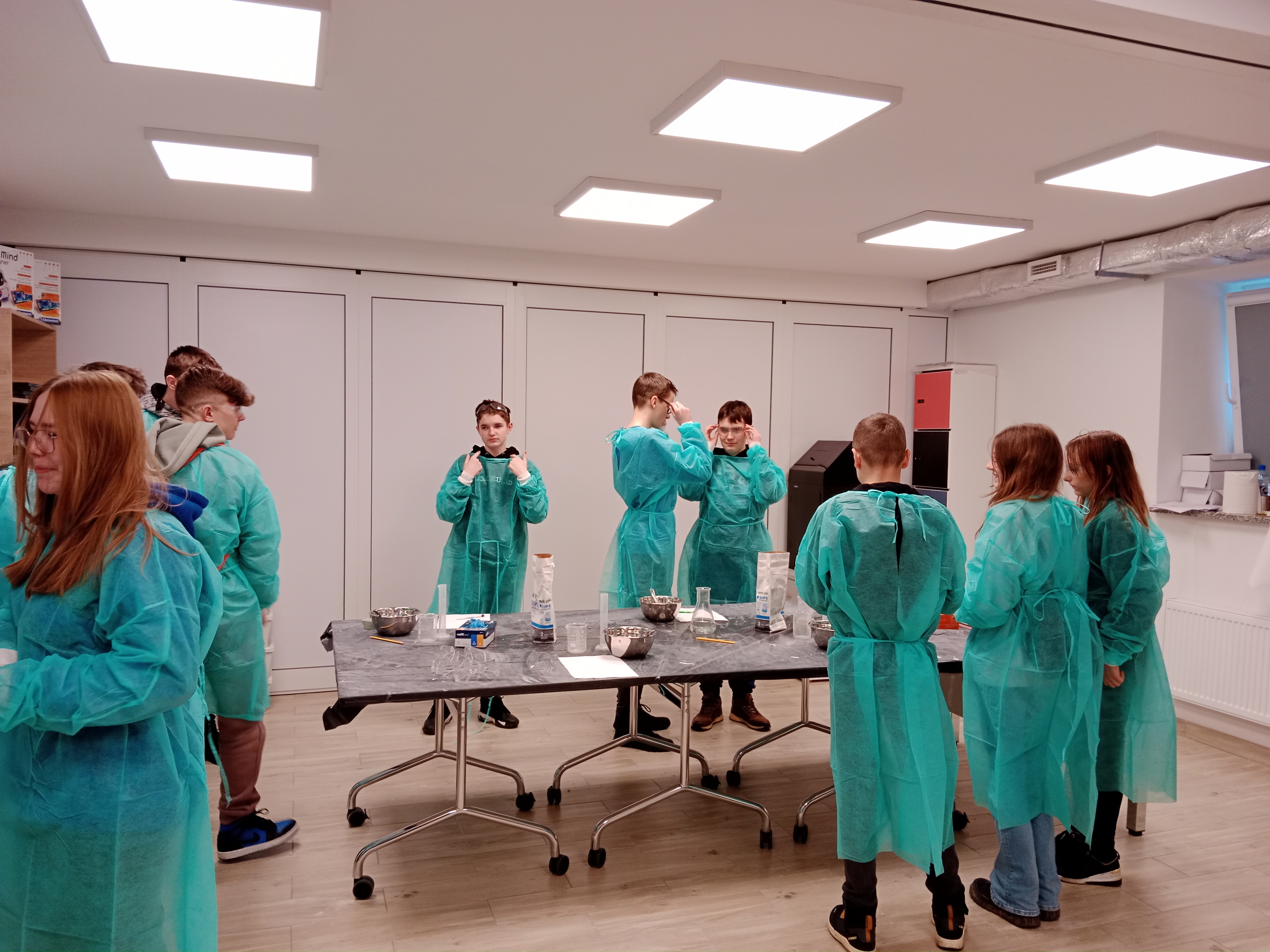 Uczniowie uczestniczyli w praktycznych zajęciach, podczas których usłyszeli o utylizacji substancji promieniotwórczych a następnie w małych grupach przeprowadzili doświadczenie związane z procesem twardnienia gipsu. Jak przystało na młodych chemików podczas wykonywania doświadczenia zapisywali obserwacje i wyciągali wnioski. Mogli również za pomocą papierka wskaźnikowego i skali pH określić pH roztworu. W drugiej części warsztatów poruszono temat różnego rodzaju promieniowania, różnych otaczających nas w przyrodzie substancji i materiałów promieniotwórczych. Samodzielnie, za pomocą specjalnego urządzenia, uczniowie sprawdzali w jakim stopniu badana substancja jest promieniotwórcza.