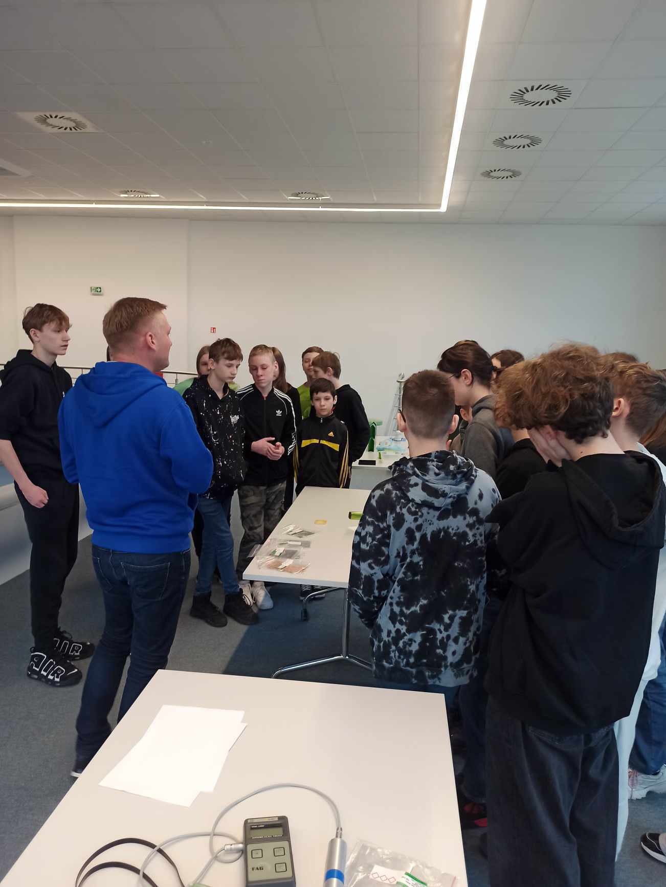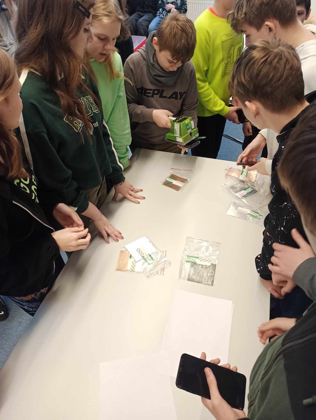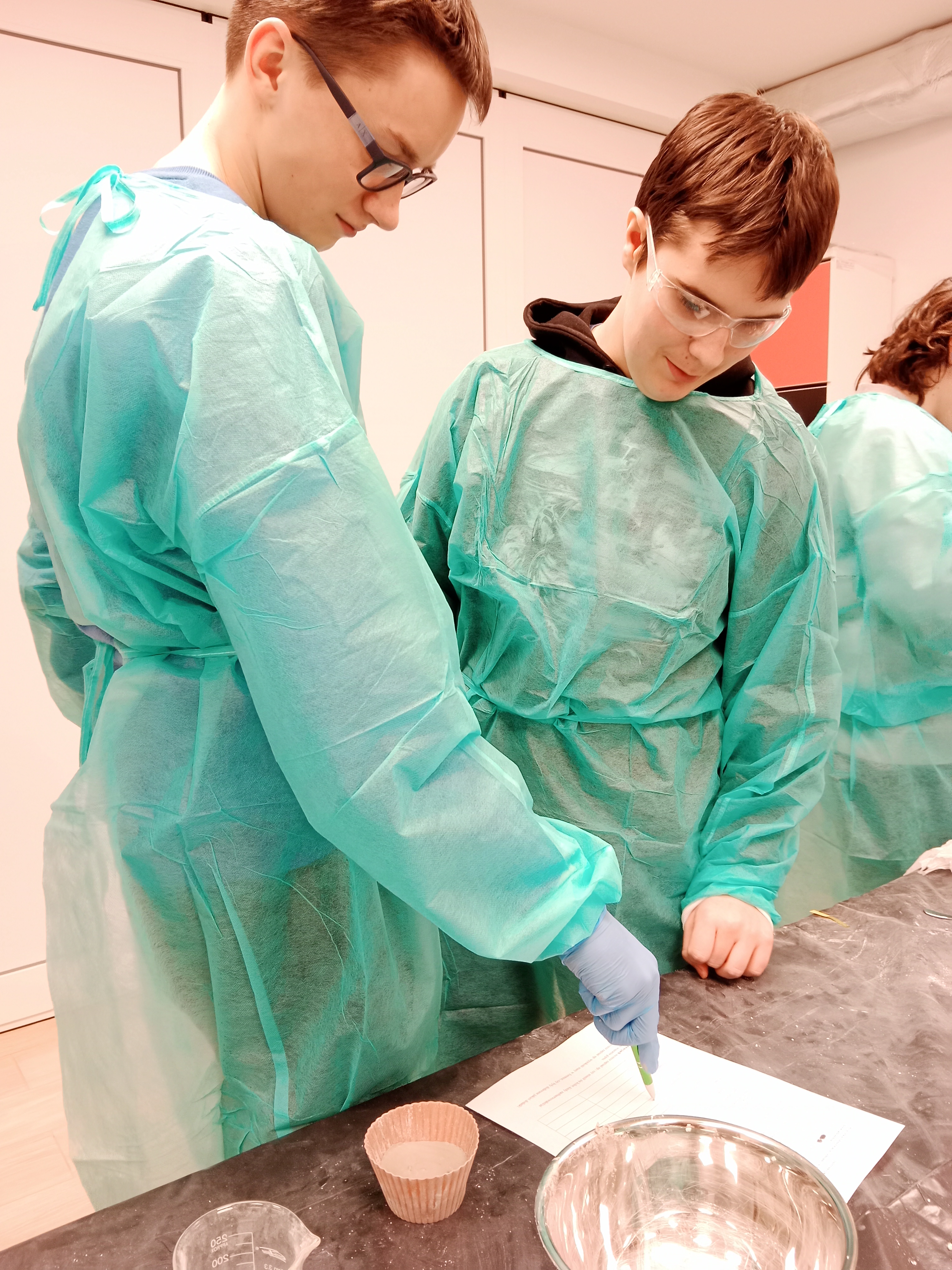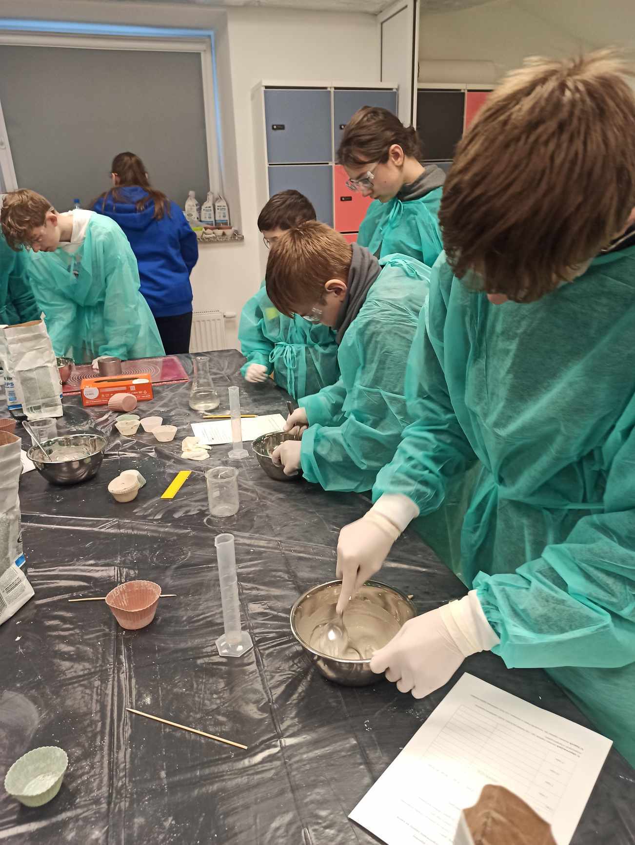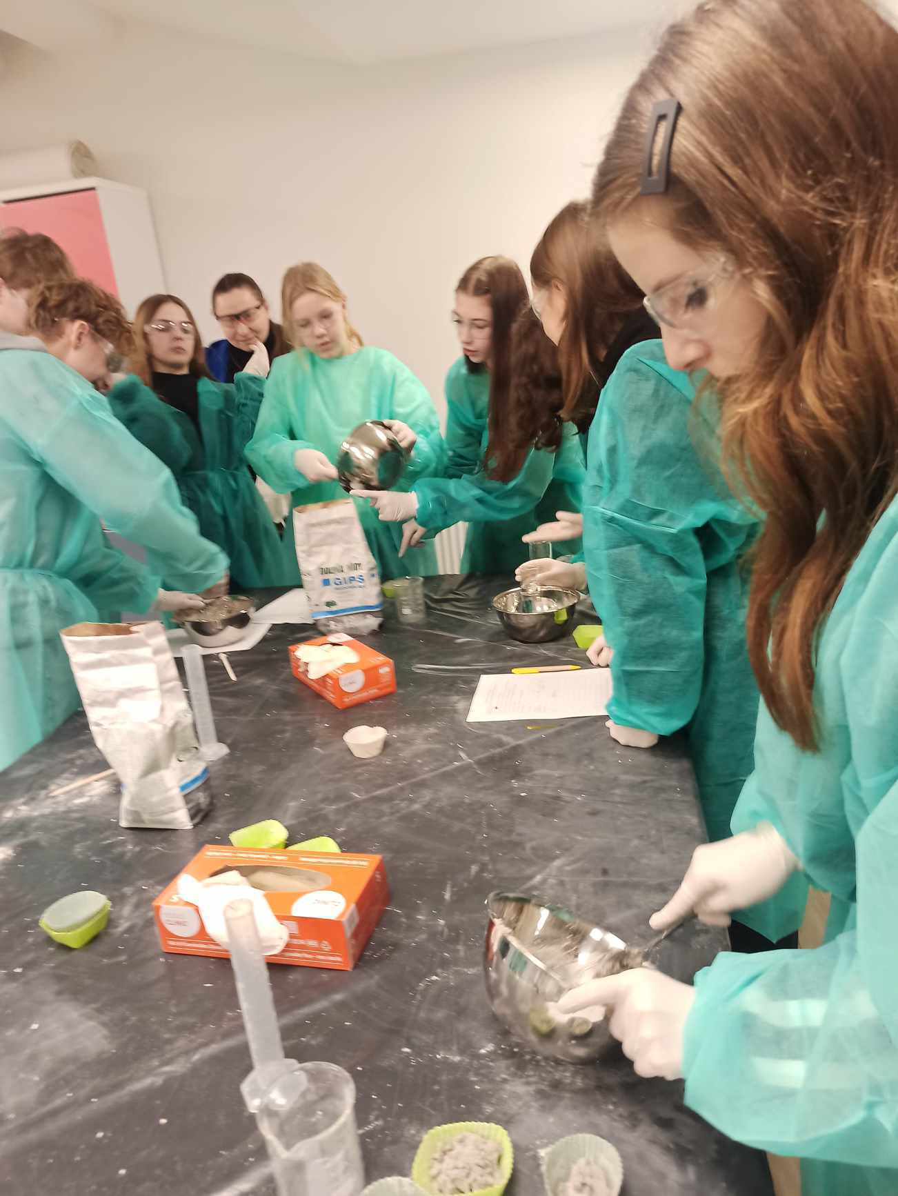 Uczniowie uczestniczyli w praktycznych zajęciach, podczas których usłyszeli o utylizacji substancji promieniotwórczych a następnie w małych grupach przeprowadzili doświadczenie związane z procesem twardnienia gipsu. Jak przystało na młodych chemików podczas wykonywania doświadczenia zapisywali obserwacje i wyciągali wnioski. Mogli również za pomocą papierka wskaźnikowego i skali pH określić pH roztworu. W drugiej części warsztatów poruszono temat różnego rodzaju promieniowania, różnych otaczających nas w przyrodzie substancji i materiałów promieniotwórczych. Samodzielnie, za pomocą specjalnego urządzenia, uczniowie sprawdzali w jakim stopniu badana substancja jest promieniotwórcza.
