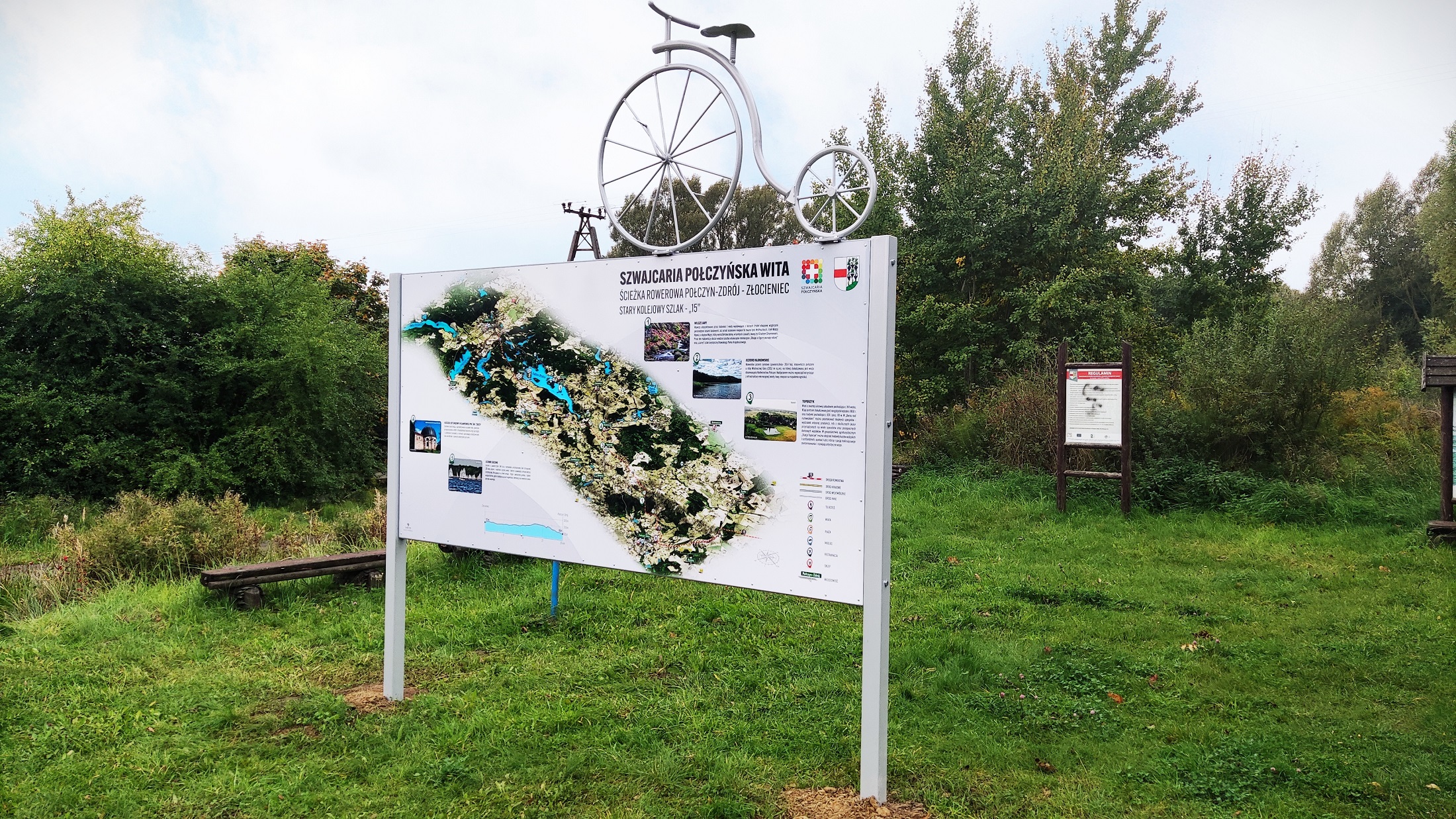 Wychodząc naprzeciw tym oczekiwaniom Gmina Połczyn-Zdrój oznakowała trasy dojazdu z rynku, do wjazdu na ścieżkę rowerową przy ul. Koszalińskiej. Tu również stanęła tablica informacyjna o wymiarach 1,5m x 3m.Z jednej strony ilustruje przebieg ścieżki rowerowej do Złocieńca (z uwzględnieniem różnic wysokości), z drugiej zawiera fotografie i opis atrakcji Połczyna-Zdroju. Aby wzbudzić większe zainteresowanie, szczególnie przejezdnych, na górnej ramie zamontowany został model roweru- bicykla – stylistyką wpisującego się w klimat starego miasta.