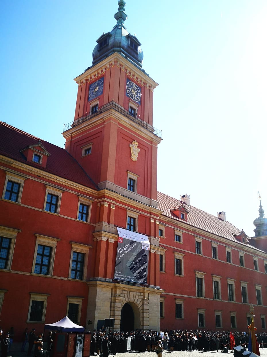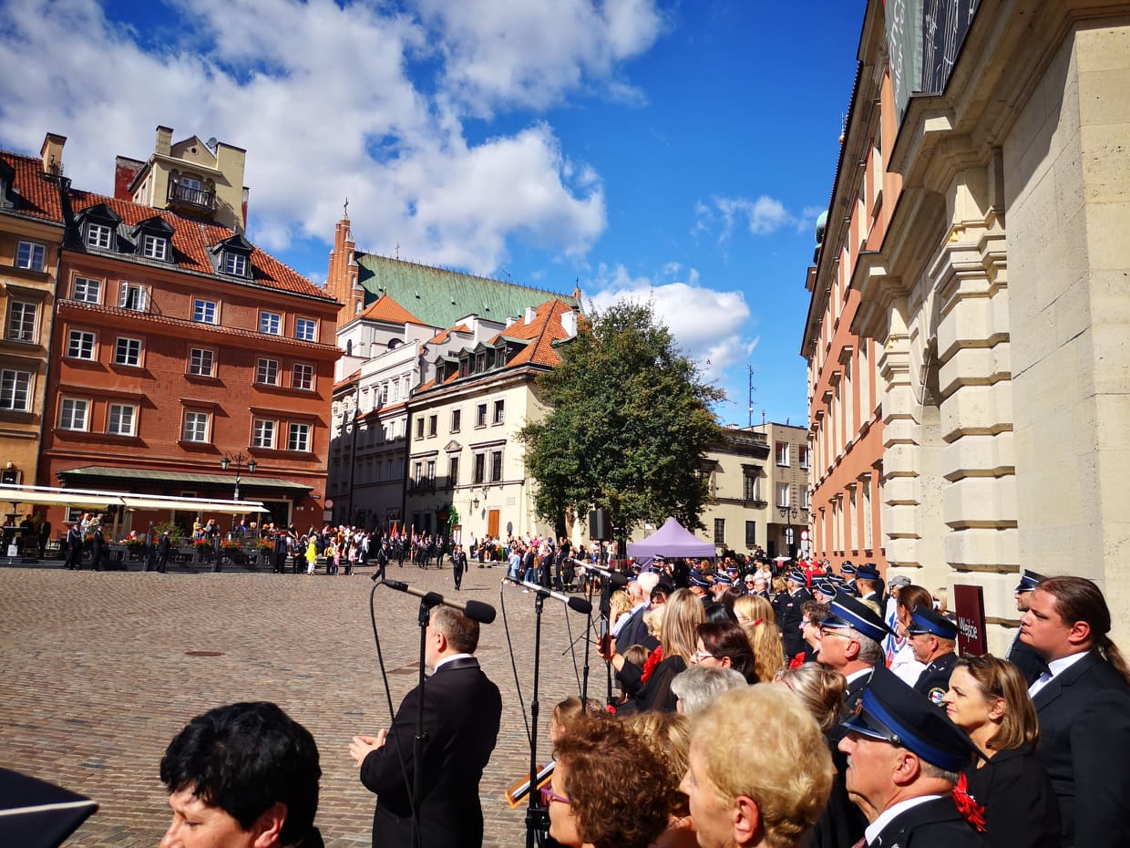 Po nabożeństwie, na Placu Zamkowym, odbył się Uroczysty Apel, będący hołdem dla pokoleń strażaków. Na maszt wieży zegarowej Zamku Królewskiego została podniesiona polska flaga narodowa, a następnie przy akompaniamencie znakomitych orkiestr strażackich z Nadarzyna i Suchowoli odśpiewaliśmy Mazurek Dąbrowskiego oraz Hymn Związku „Rycerze Floriana”. Podczas apelu zaprezentowaliśmy pieśń przygotowaną specjalnie na Jubileusz 100-lecia pt. "Płonie w nas strażacki zew", skomponowaną przez naszego dyrygenta Bolesława Kurka z tekstem jednego z chórzystów, Andrzeja Tworka. Druhnom i druhom spodobał się utwór – drugi refren śpiewali już razem z nami.
