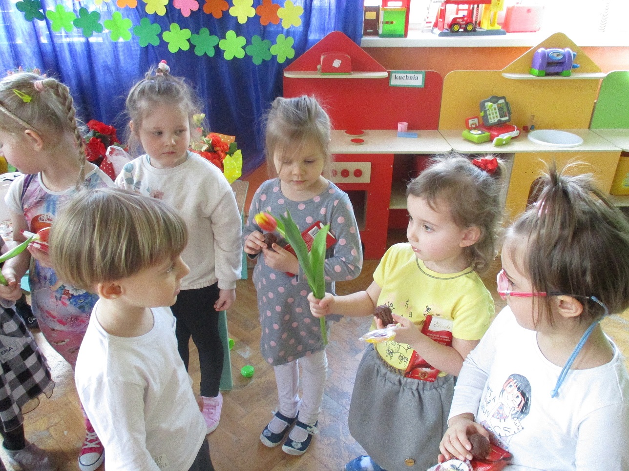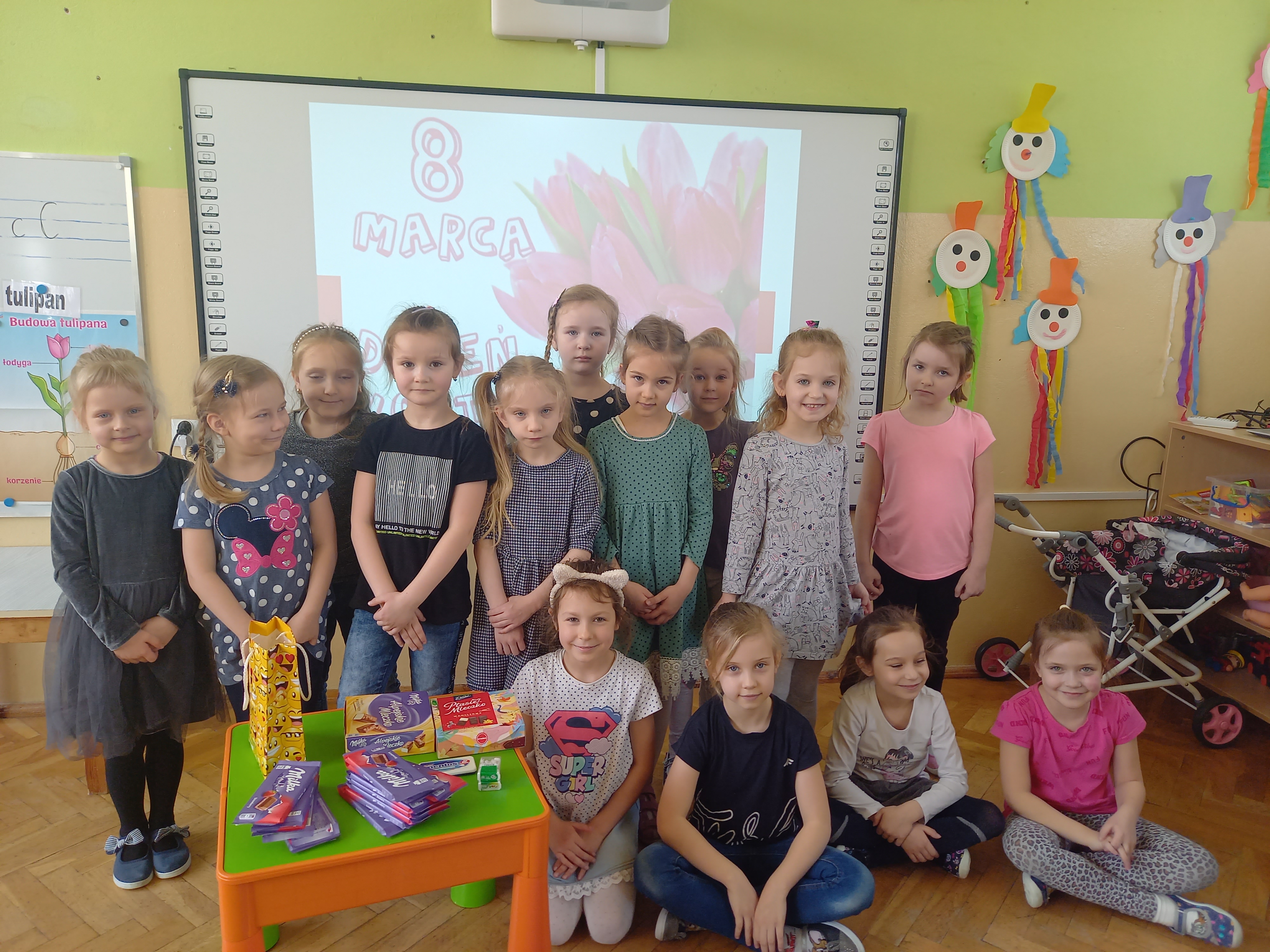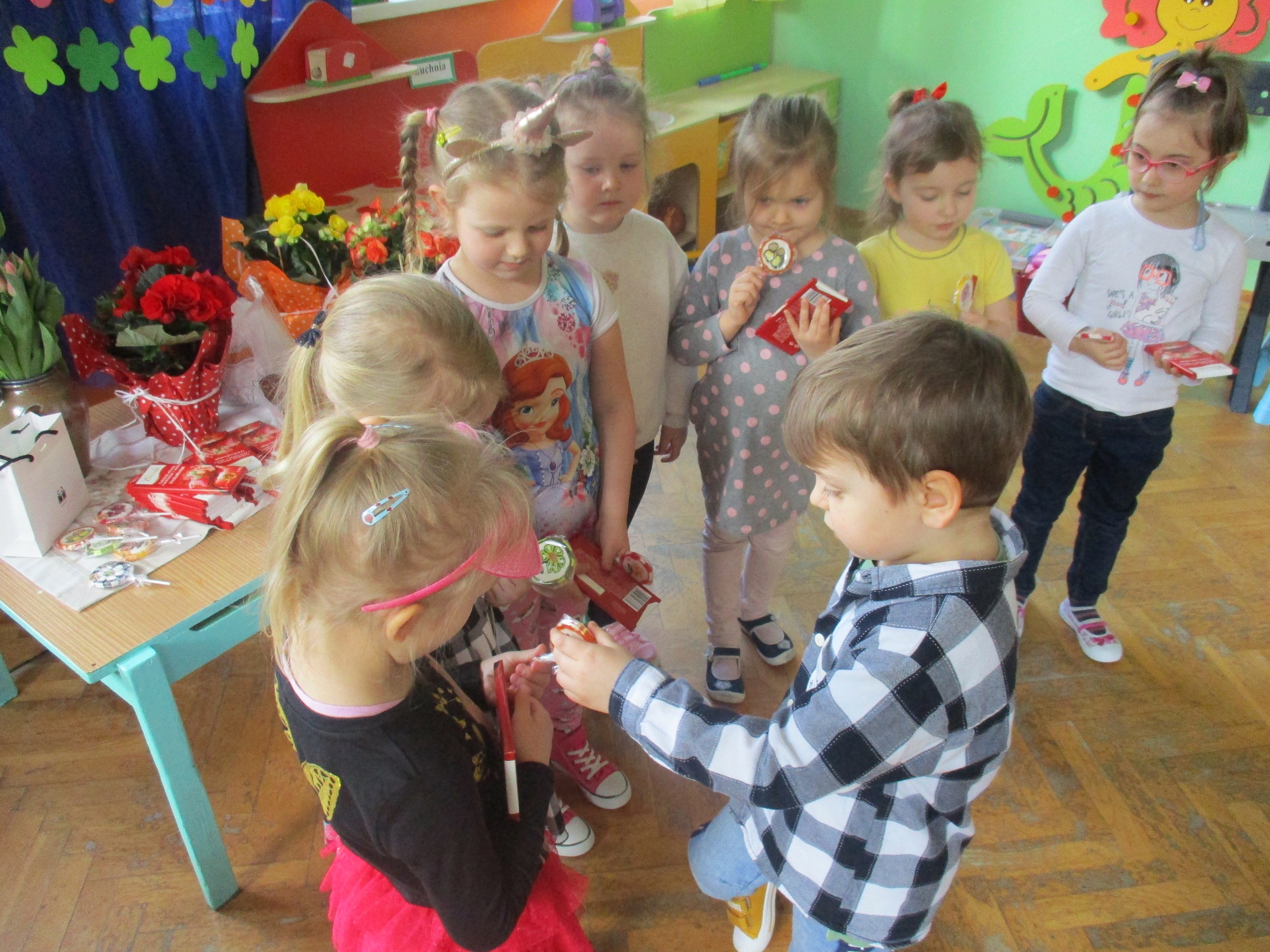 Mali dżentelmeni są wśród nas. Nie zabrakło życzeń, słodyczy i kwiatów, tak świętowały najmłodsze kobietki z Jarzębinki.