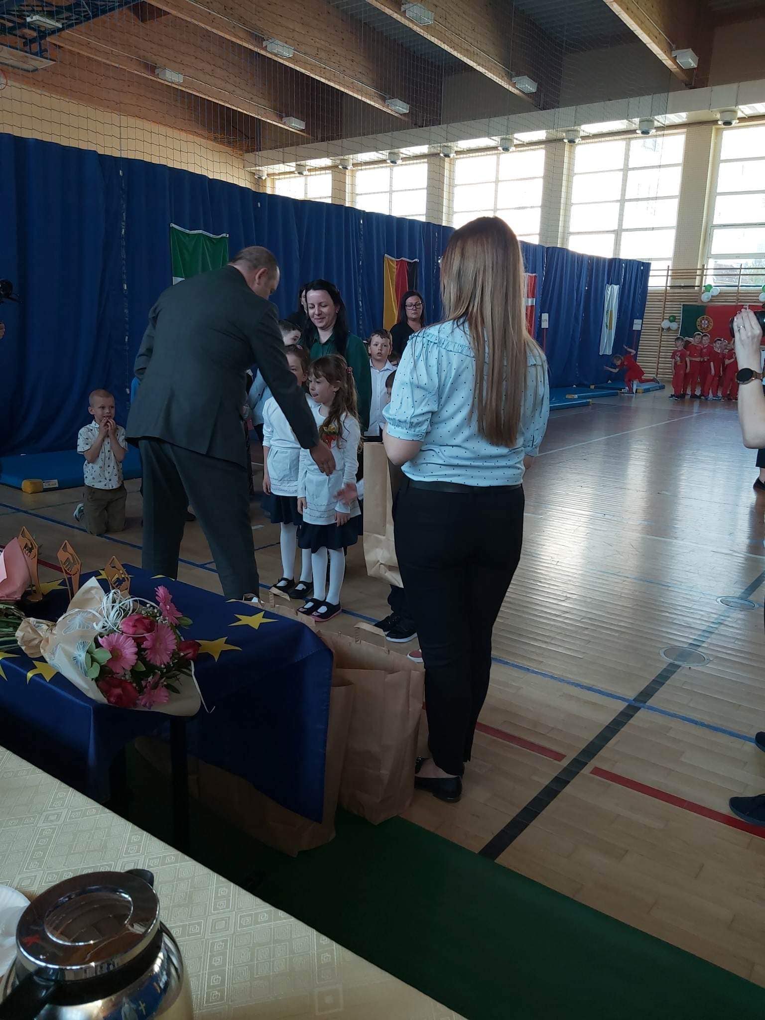 Sebastian Witek, burmistrz Połczyna-Zdroju wręczył dzieciom statuetki oraz nagrody, dziękując jednocześnie za profesjonalne przygotowanie przedsięwzięcia pani Zofii Zatorskiej, pomysłodawczyni Europrzedszkoliady, pani Michalinie Olszańskiej, jej koordynatorowi w gminie Połczyn-zdrój oraz dyrektorom, nauczycielom i dzieciom za ogromne zaangażowanie i wspaniałe występy artystyczne.