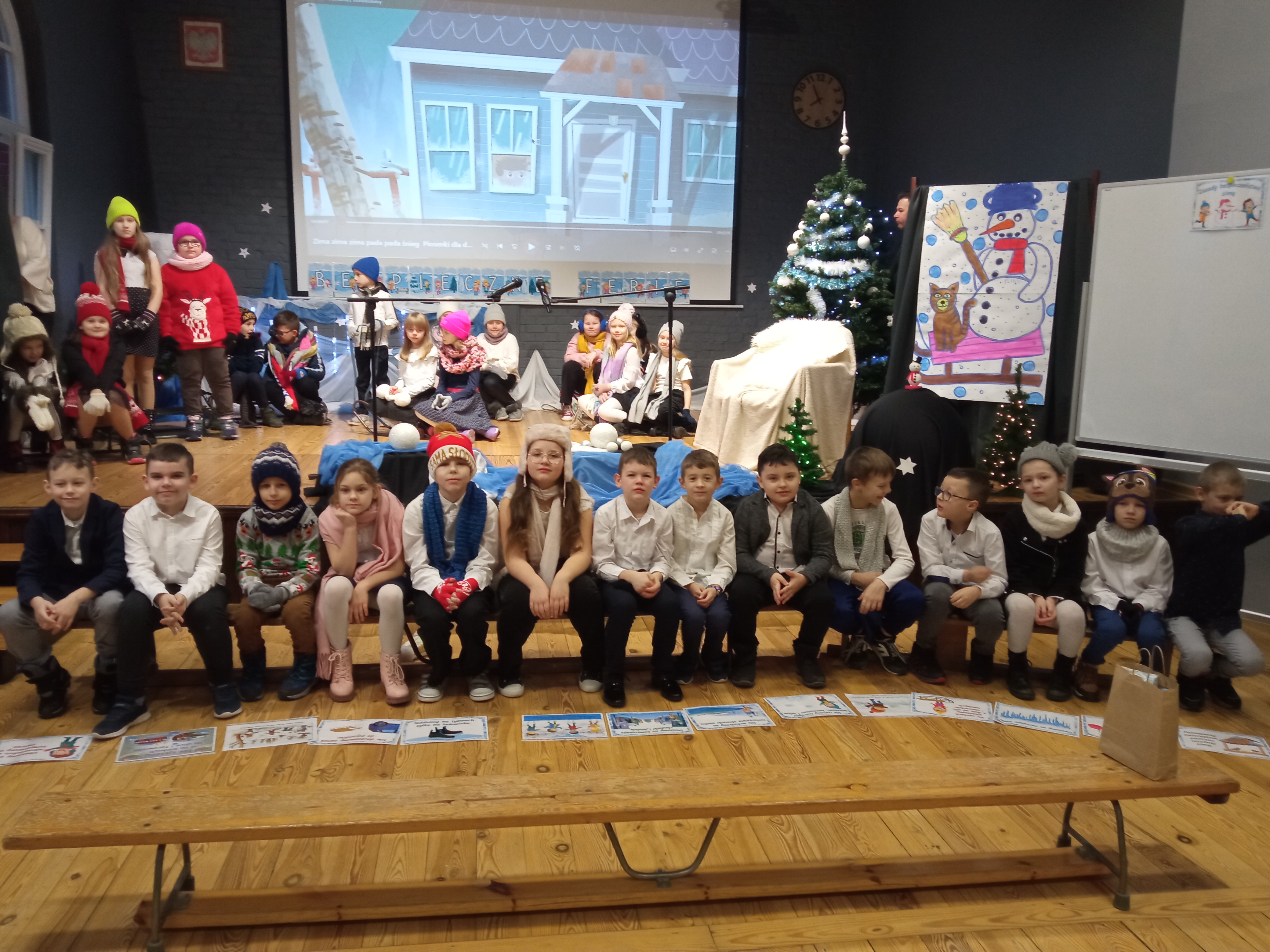 W piątek, 12 stycznia 2024 roku uczniowie klas drugich Szkoły Podstawowej nr 1 im. Adama Mickiewicza w Połczynie-Zdroju wraz z wychowawczyniami Beatą Czajką i Małgorzatą Ciechanowicz przygotowali przedstawienie z okazji zbliżających się ferii. Podczas atrakcyjnego programu artystycznego przeplatanego piosenkami przypomnieli społeczności szkolnej zasady bezpiecznego spędzania zimowego odpoczynku. Po przedstawieniu nastąpiło podsumowanie pracy uczniów w pierwszym semestrze roku szkolnego.