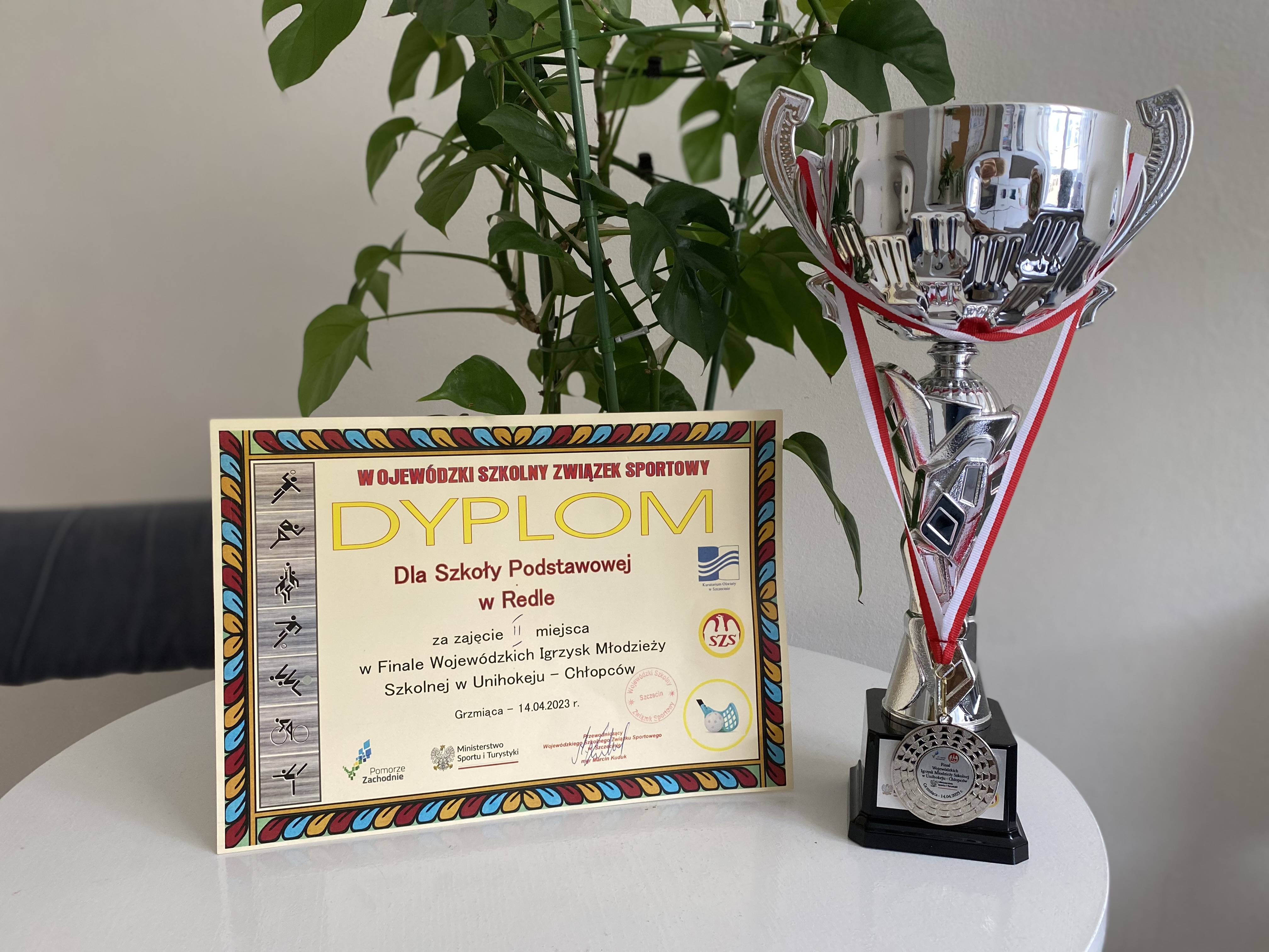 W miniony piątek uczniowie Szkoły Podstawowej im. Jana Pawła II w Redle wraz z trenerem Panem Wojciechem Grobelą, wzięli udział w zorganizowanym przez Wojewódzki Szkolny Związek Sportowy Finale Wojewódzkim Igrzysk Młodzieży Szkolnej w Unihokeju Chłopców w Grzmiącej. Szkołę Podstawową im. Jana Pawła II w Redle reprezentowali chłopcy z klas VII oraz VIII W składzie: Patryk Szymczak, Michał Białek, Adrian Kozłowski, Oliwier Janaszek, Karol Hnatowicz, Dominik Prochenka, Mariak Szymon, Michał Smyła, Gabriel Mazolewski, Oliwier Arczewski. Początkowo chłopcy zajęli pierwsze miejsce w grupie, następnie spotykając się w wielkim finale z drużyną ze Szkoły Podstawowej w Wierzchowie poddali mecz w rzutach karnych 2:1. Drużyna z Redła zajęła II miejsce w klasyfikacji ogólnej, tym samym awansując do Ogólnopolskich Igrzysk Młodzieży Szkolnej, które odbędą się w Elblągu w dniach 9-11 czerwca 2023 r.