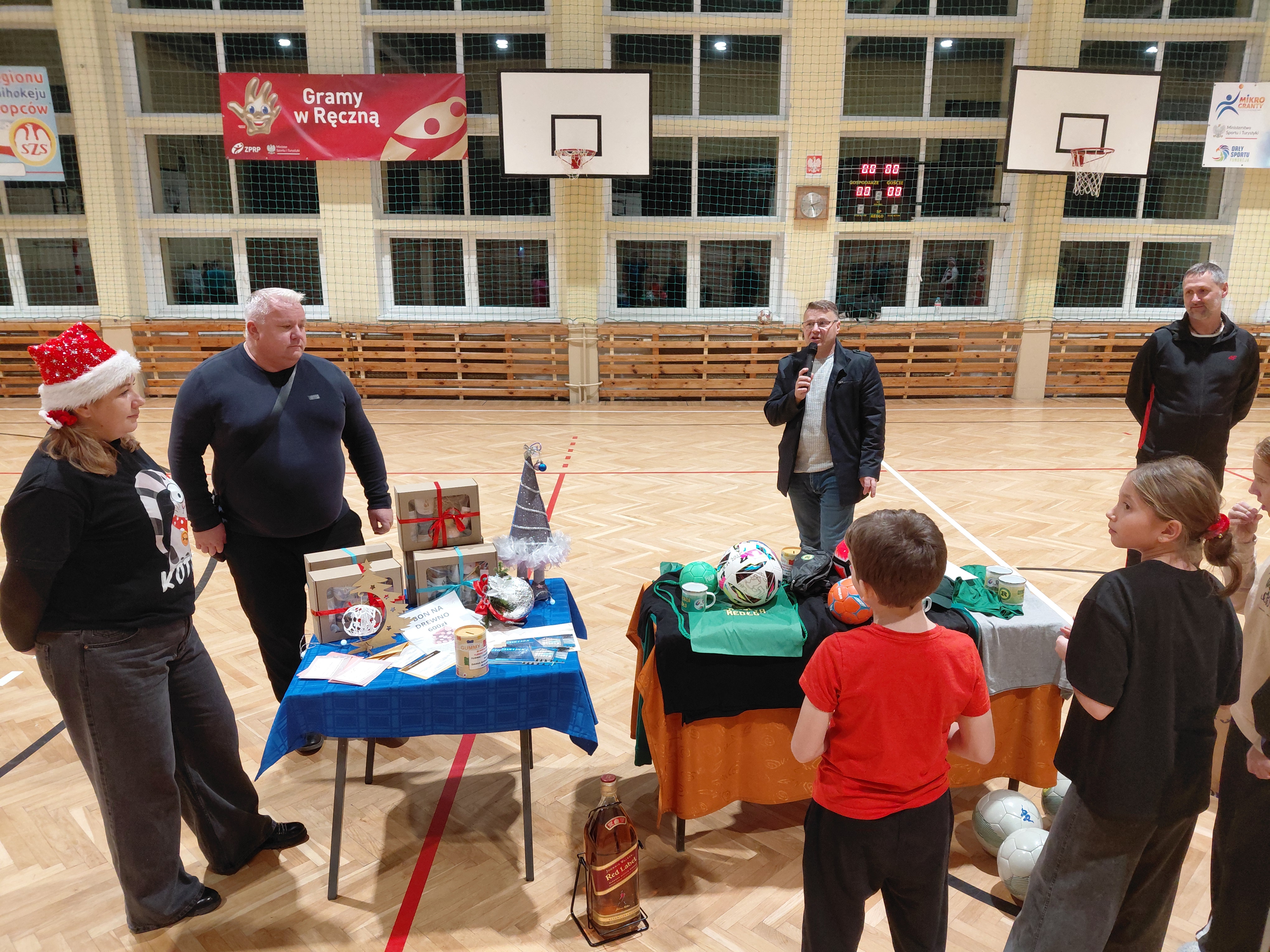 Sportowym emocjom towarzyszyły mikołajkowe atrakcje dla najmłodszych – dmuchańce, zdobienie pierniczków oraz tworzenie kartek świątecznych. Dzięki Paniom z KGW można było skosztować przepysznych domowych specjałów: pierogów, barszczu, krokietów, ciast, gofrów czy popcornu. Aromatyczny bigos przygotowany przez Dyrektor Szkoły w Redle we współpracy z Panem Radnym kusił wszystkich już od wejścia. Nikt nie wyszedł głodny!