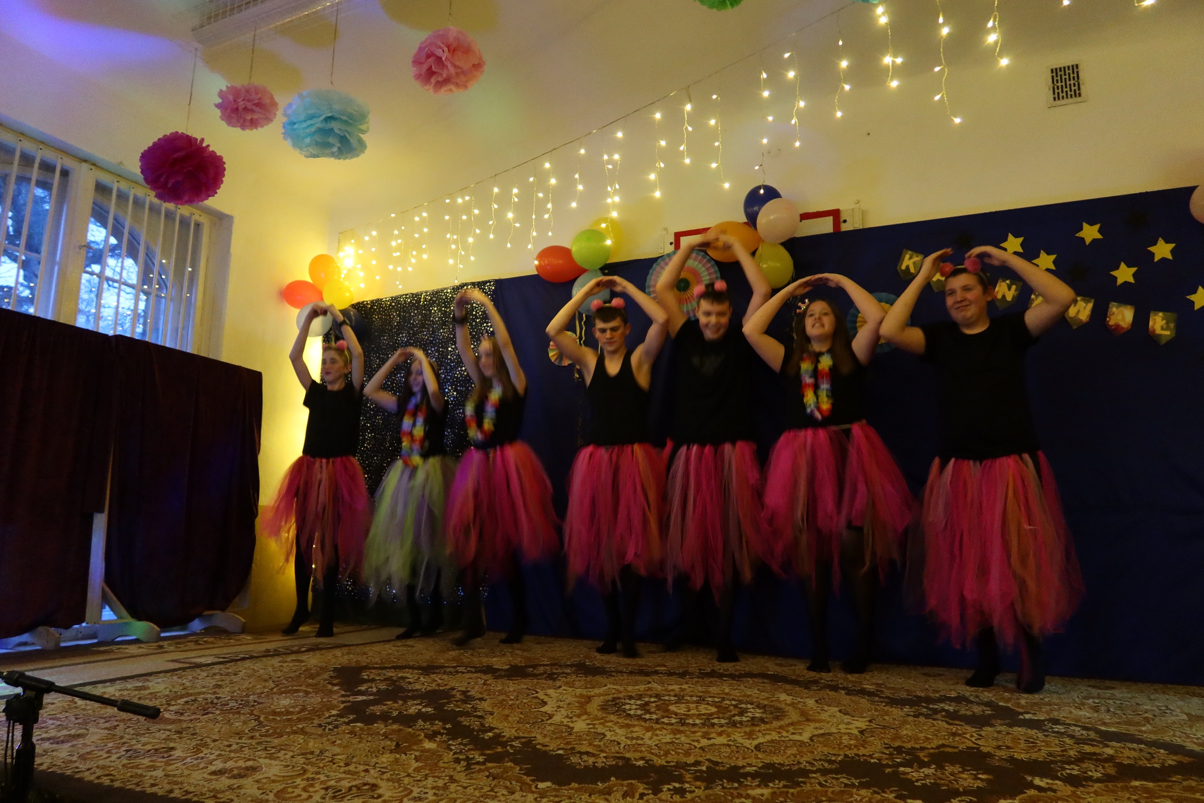 Dobrą zabawę karnawałową urozmaicały rożne konkursy. Dużym powodzenie cieszyła się „ścianka" przygotowana specjalnie na tę okazję, która wraz z kolorową dekoracją tworzyła szczególny klimat zabawy.
