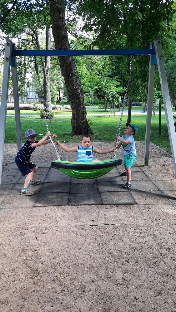 Do miłego spędzenia czasu w parku zachęca dzieci plac zabaw, ale nie tylko. Byliśmy tam zimą, a i teraz odwiedziliśmy bezdomne koty w ich domkach, które znajdują się obok Sanatorium Gryf.