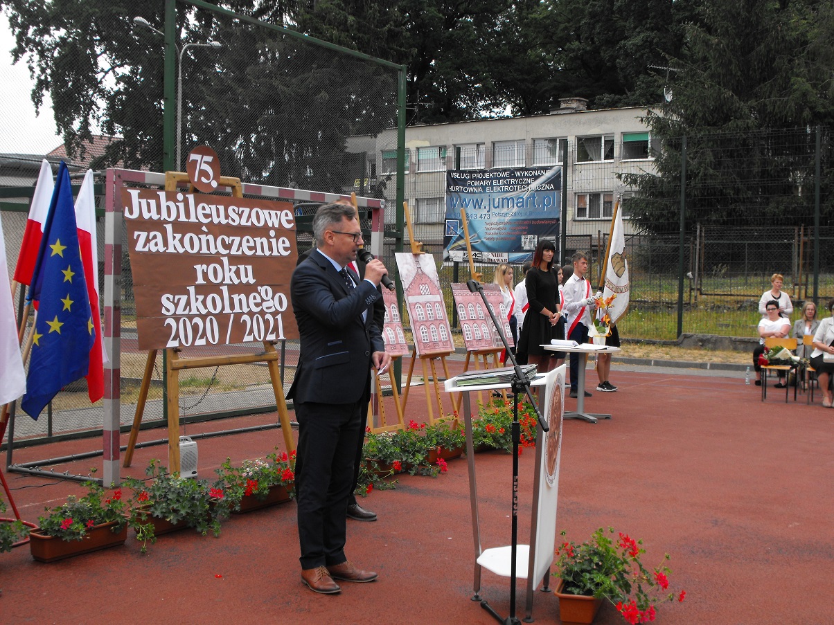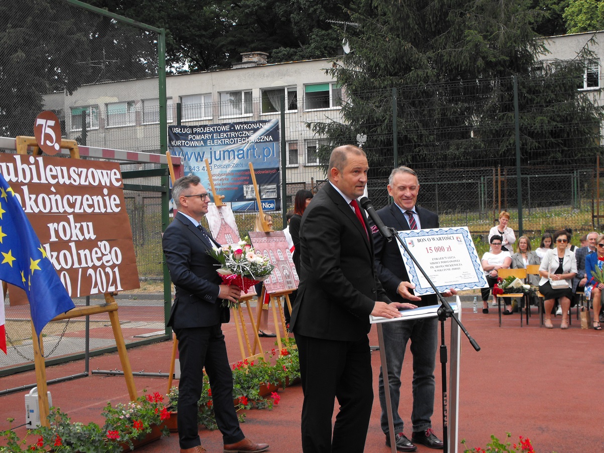 Dnia 25 czerwca 2021 roku o godzinie 9:00 w Szkole Podstawowej nr 1 im. Adama Mickiewicza w Połczynie – Zdroju miała miejsce uroczystość 75. Jubileuszowego zakończenia roku szkolnego. Wśród zaproszonych gości dyrektor Stanisław Tokarski miał honor i zaszczyt powitać posłankę 4 kadencji do Sejmu Rzeczypospolitej Polskiej Zofię Wilczyńską, Zachodniopomorskiego Kuratora Oświaty Bogusława Ogorzałka, Sekretarza powiatu świdwińskiego Mirosława Pierza, Burmistrza Połczyna – Zdroju Sebastiana Witka, Przewodniczącego Rady Miejskiej w Połczynie – Zdroju Janusza Podporę wraz z radnymi, wieloletniego Burmistrza Połczyna – Zdroju Barbarę Nowak, Kierownika ds. Oświaty Bogdana Wachowiaka, Proboszcza Parafii p.w. NP NMP księdza infułata Antoniego Kloskę, obecnych i byłych dyrektorów placówek oświatowych w mieście i gminie Połczyn – Zdrój, byłych i obecnych pracowników szkoły, Zarząd Rady Rodziców.