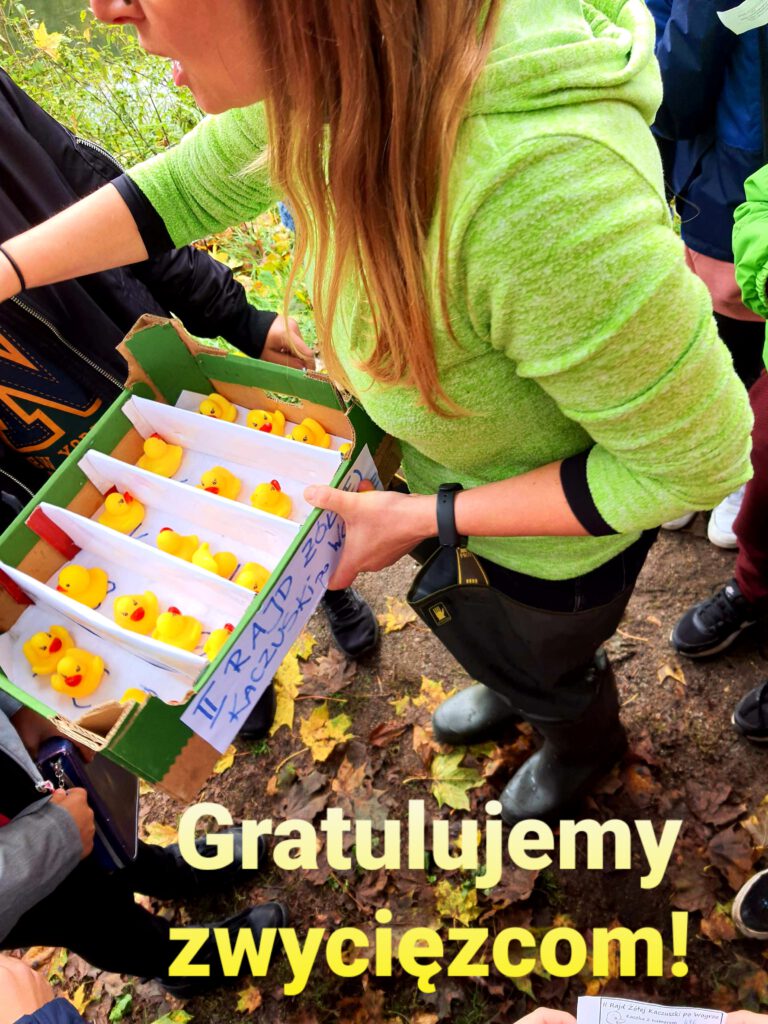 Tym razem była to skromna impreza ze względu na Covid-19. Kaczki wystartowały w 2 seriach: o 10:00 dla klas I-IV i o 12:00 dla klas V-VII. Emocje były duże, młodsze dzieci skandowały „Kaczki! Kaczki!” a potem „Wypuść jedną!” Starsi uczniowie z niecierpliwością wyglądali ostatniej kaczki, która dodatkowo wygrywała nagrodę specjalną – zwolnienie z odpowiedzi ustnej i sprawdzania pracy domowej przez tydzień. Wogrą popłynęło 1198 kaczuszek, dzięki którym pozyskaliśmy 5990 zł. Wręczyliśmy aż 41 nagród. Jesteśmy dumni, bo wygraliśmy wszyscy!