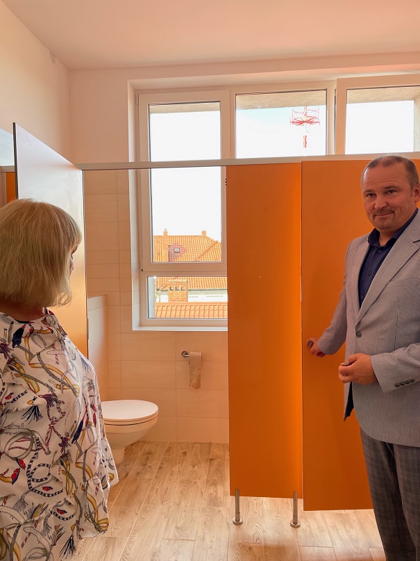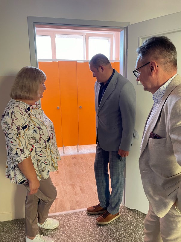 #POŁCZYNPLACBUDOWY Kolejne udoskonalenie w połczyńskiej „Jedynce”. We wtorek 5 września 2023 r. Burmistrz Sebastian Witek odebrał I etap zakończonych prac remontowych polegających na dostosowaniu pomieszczeń sanitarnych w budynku pawilonu w Szkole Podstawowej nr 1 w Połczynie-Zdroju.