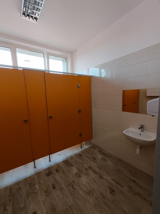 Prace na II piętrze obejmowały w szczególności wykonanie nowych okładzin na ścianach i podłodze, instalacji wodno-kanalizacyjnych, montaż umywalek, mis ustępowych oraz kabin wc. Wartość robót to 62 000 zł.