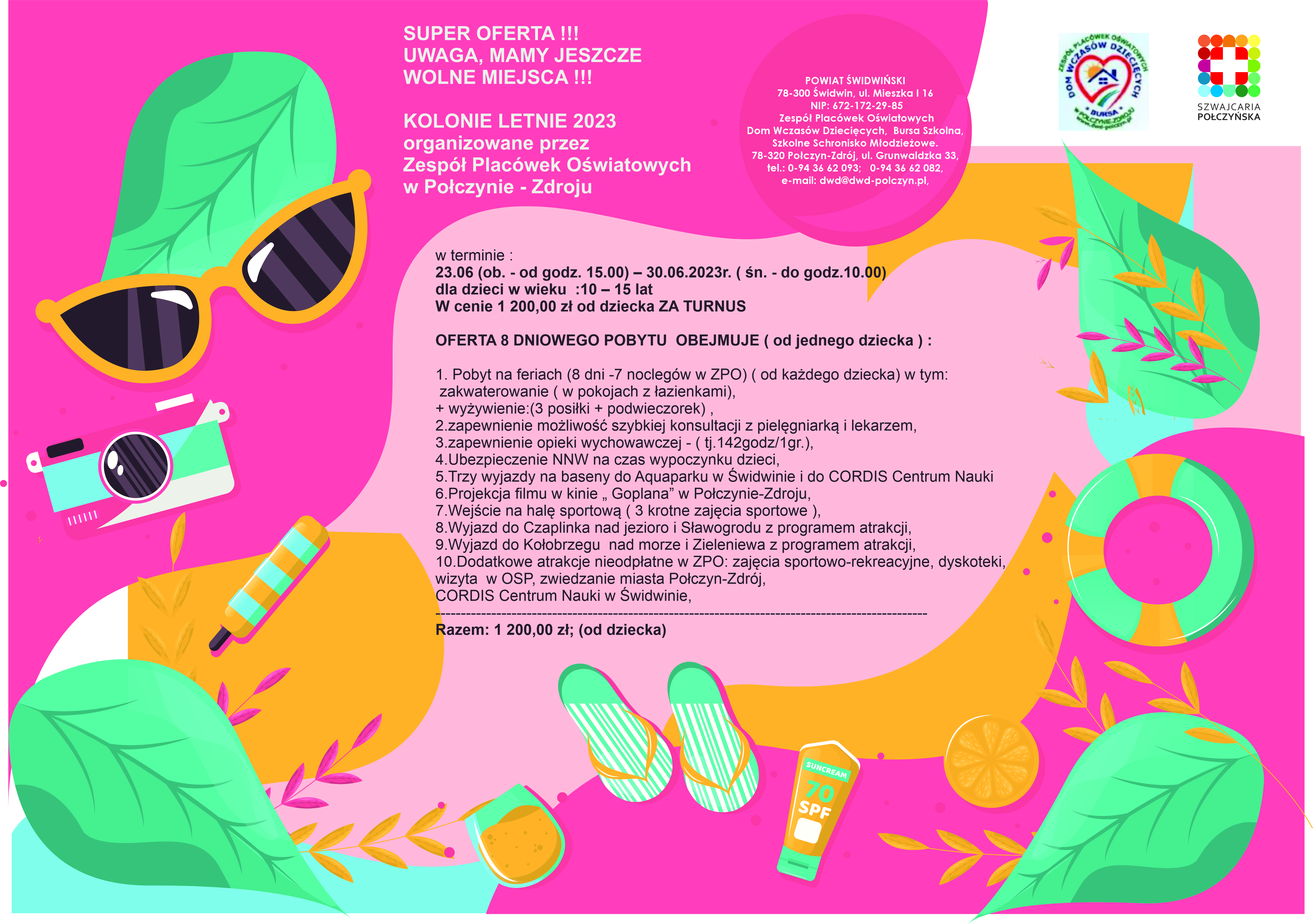 KOLONIE LETNIE 2023 organizowane przez Zespół Placówek Oświatowych w Połczynie - Zdroju