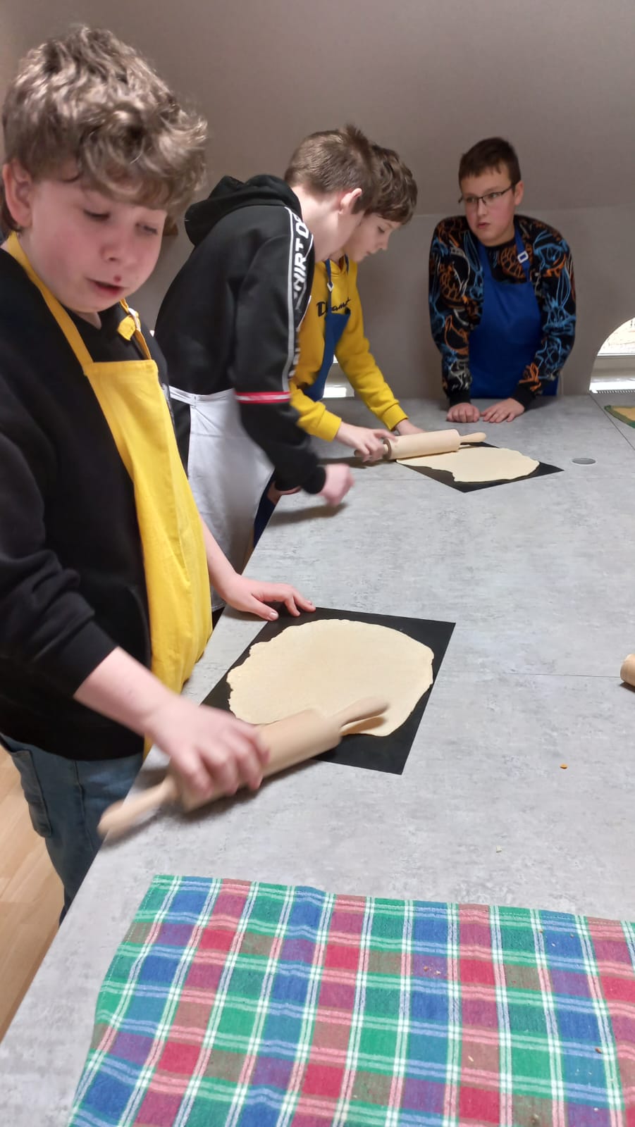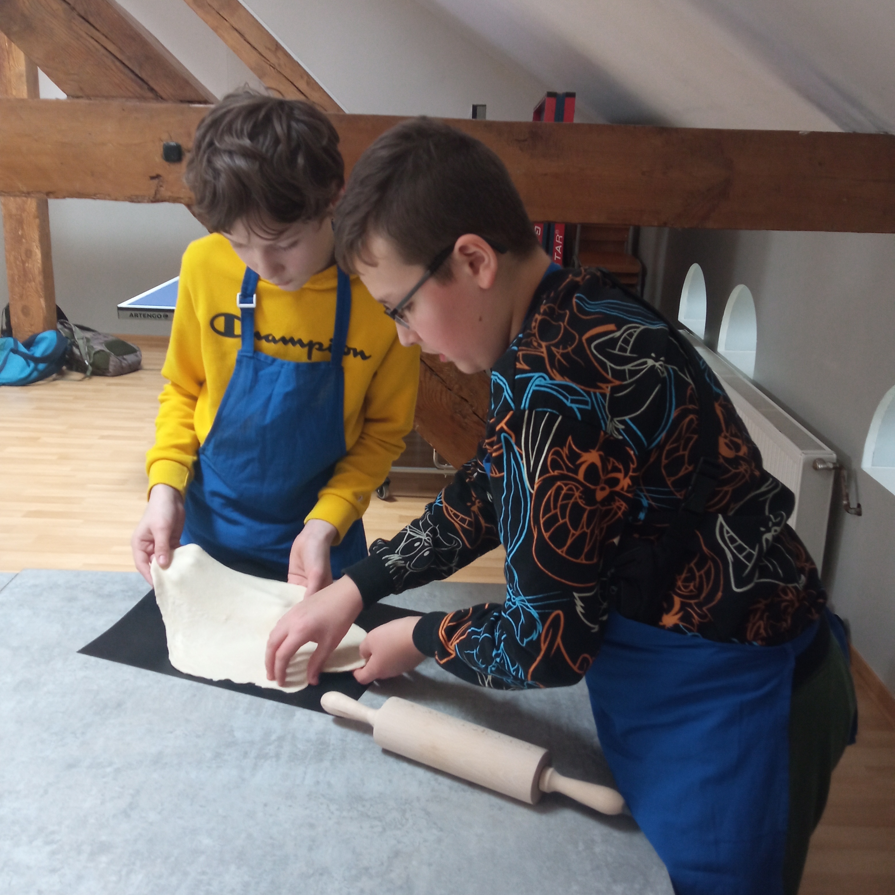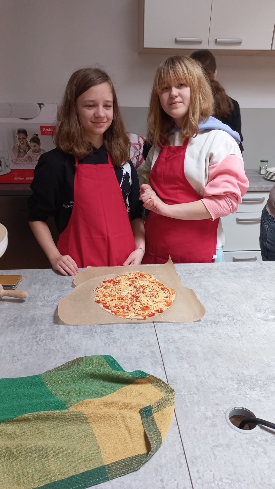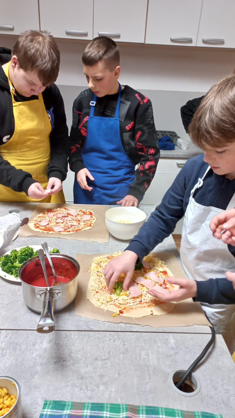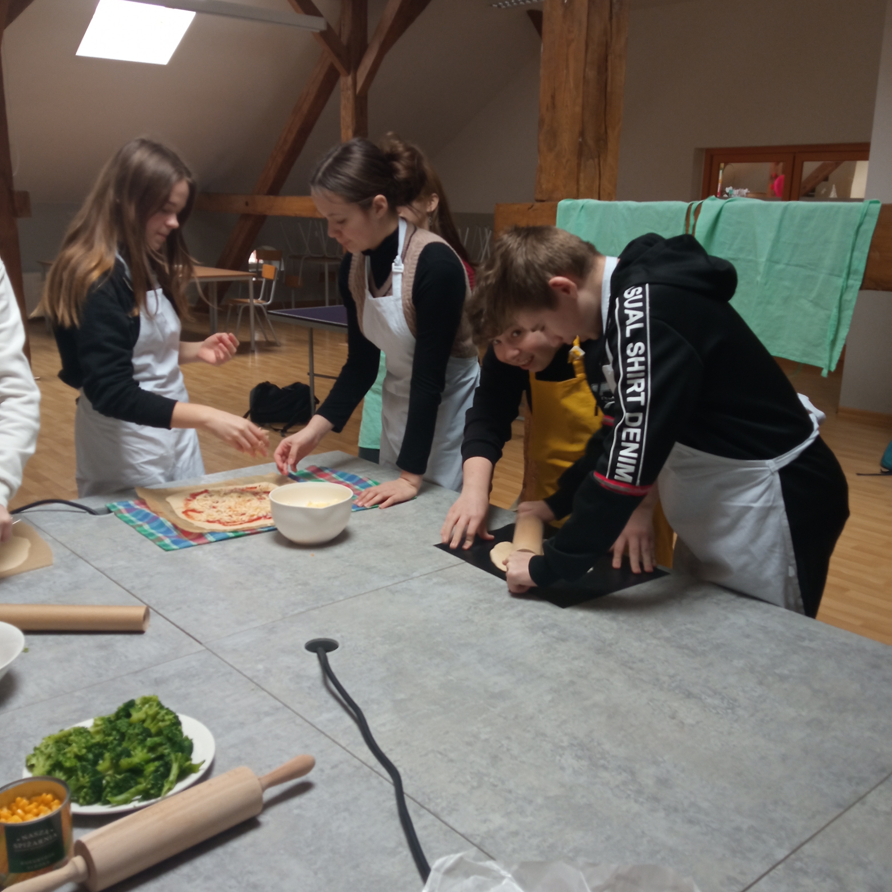 Podczas pracy odmierzali potrzebne produkty, wyrabiali ciasto, kroili i tarkowali potrzebne produkty, a nawet udało się wykonać własny sos z passaty.