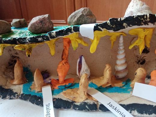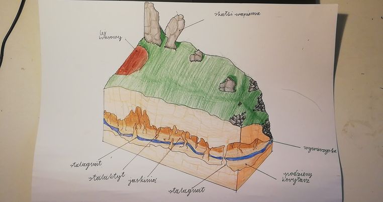 Uczniowie „Jedynki” realizowali projekt, którego głównym celem było przedstawienie w dowolnie wybrany przez nich sposób form rzeźby krasowej. Kolejny już raz potwierdziło się, że wyobraźnia uczniów nie zna granic. Do wykonania swoich prac wykorzystali m.in.  popularną grę Minecraft, w której zbudowali jaskinie krasowe, a następnie za pomocą wykonanych samodzielnie filmików zabrali wszystkich zainteresowanych w wirtualną podróż po nich. Grupa uczniów postanowiła wykonać swoje zadanie w formie pracy przestrzennej i w ten sposób powstały przepiękne makiety jaskiń, do których wykonania użyto przeróżnych materiałów: masy solnej, pianki montażowej, kamieni, muszelek, mchu, a nawet klocków Lego. Powstało również wiele ciekawych plakatów, przedstawiających rzeźbę krasową.