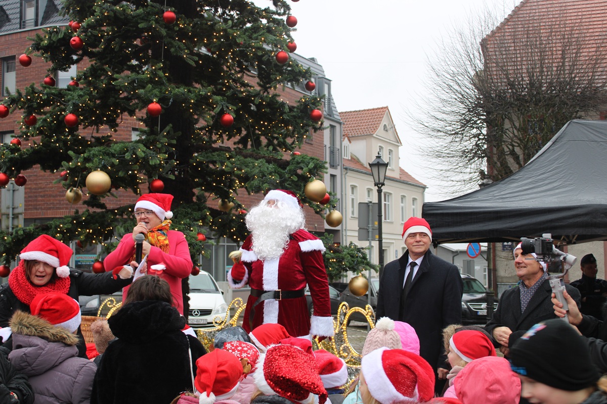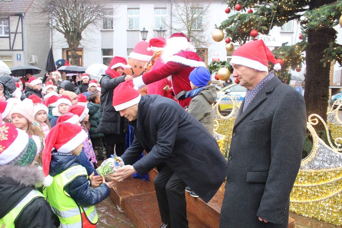 Gdy choinka już zabłysła, do wspólnej mikołajkowej zabawy dołączyli także mieszkańcy miasta. Wspólnie z Mikołajem i dziećmi zatańczyli wokół choinki, a najmłodsi otrzymali paczuszki ze słodkościami.
