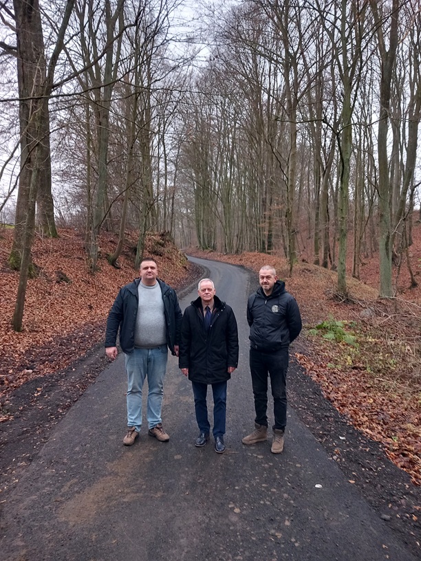 Odbiór prac nastąpił w dniu 15 grudnia 2025 r. W odbiorze uczestniczyli przedstawiciele wykonawcy, Nadleśnictwa Połczyn oraz Józef Nizioł - Burmistrz Połczyna-Zdroju wraz z pracownikiem ds. utrzymania dróg w Gminie Połczyn-Zdrój.