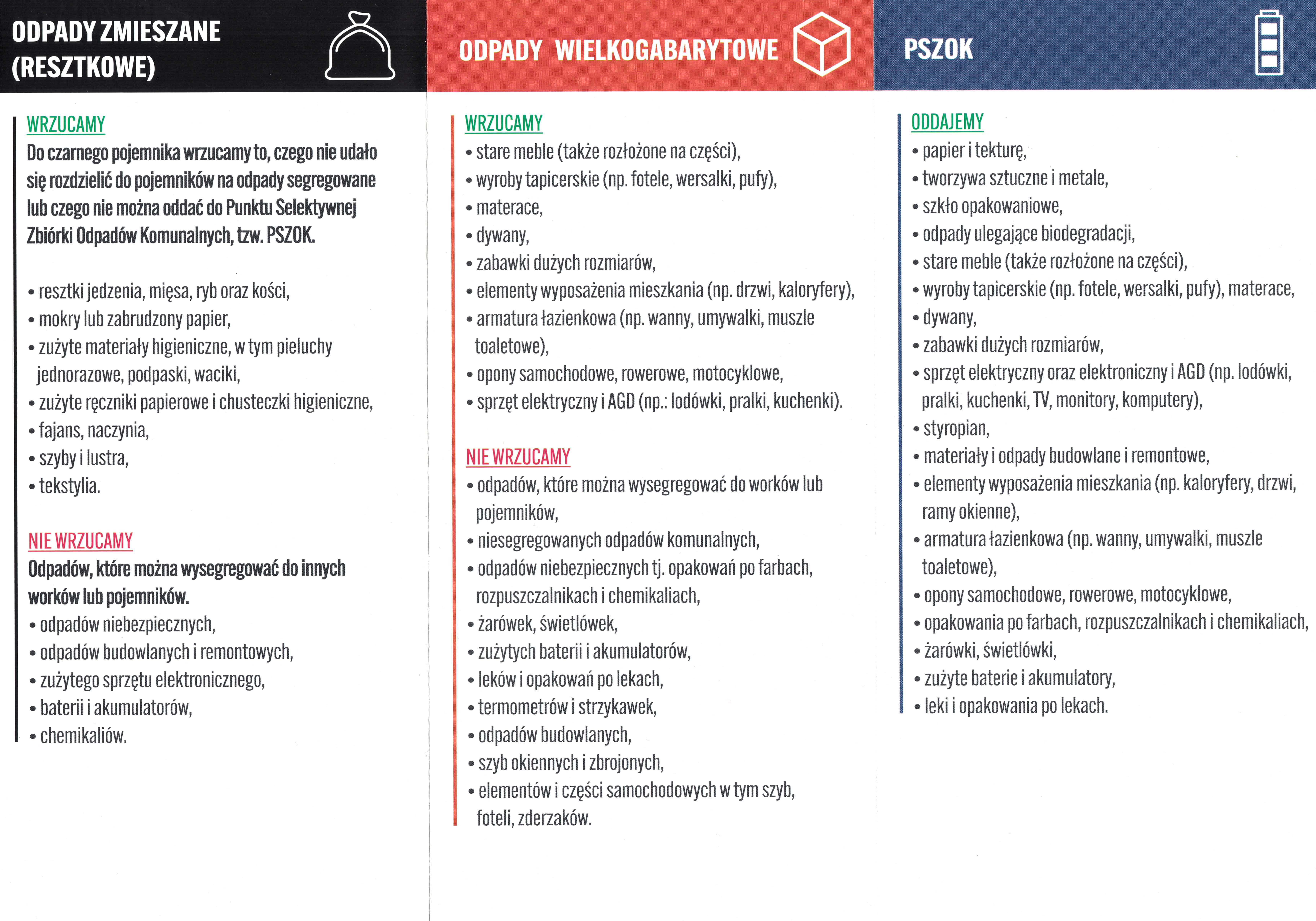W razie pojawiających się wątpliwości co do sposobu prawidłowej segregacji odpadów zachęcamy Państwa do odwiedzenia strony: Nasze śmieci lub do bezpośredniego kontaktu z pracownikami Urzędu Miejskiego w Połczynie – Zdroju pod nr tel. (0-94)36 66 115.