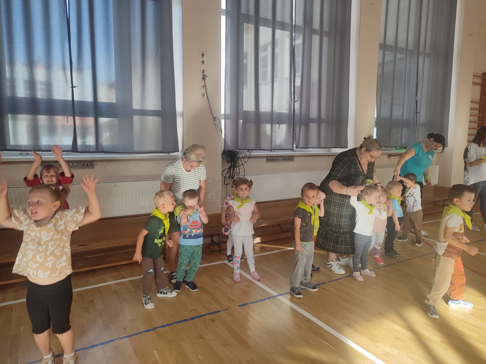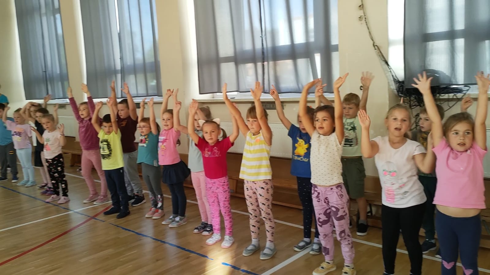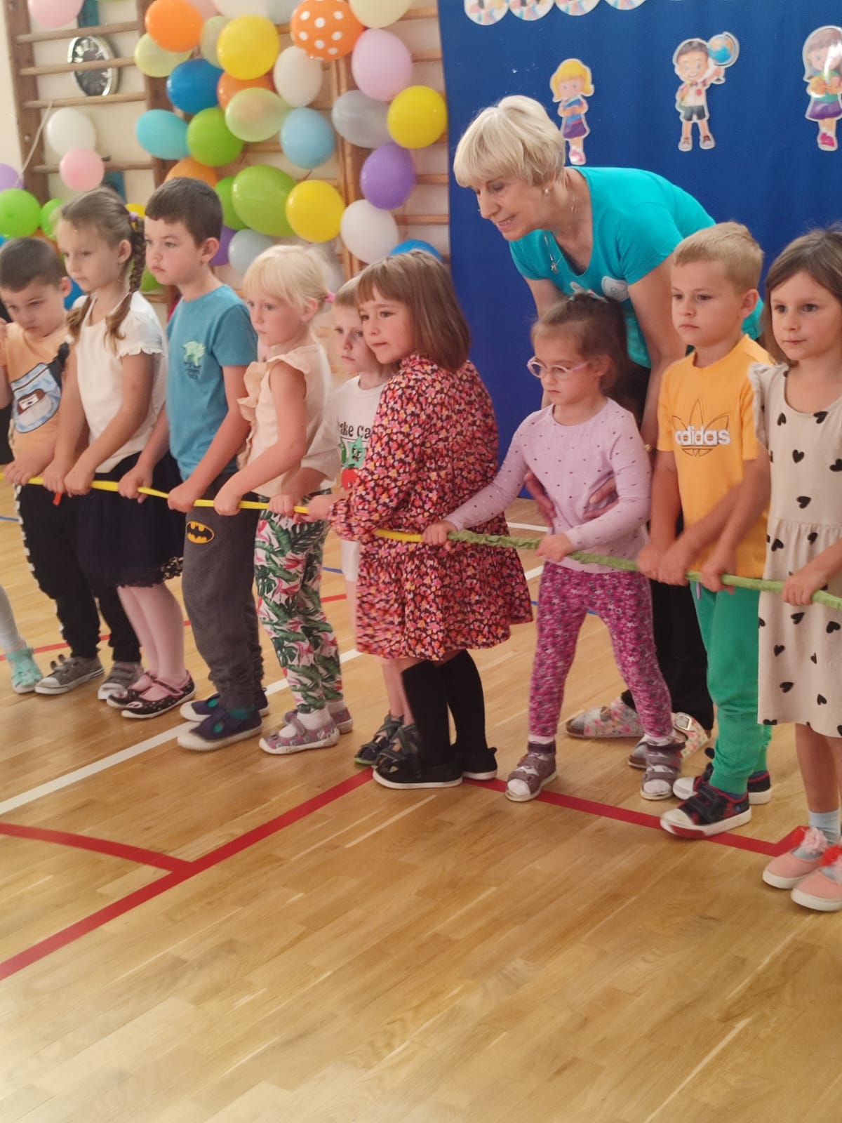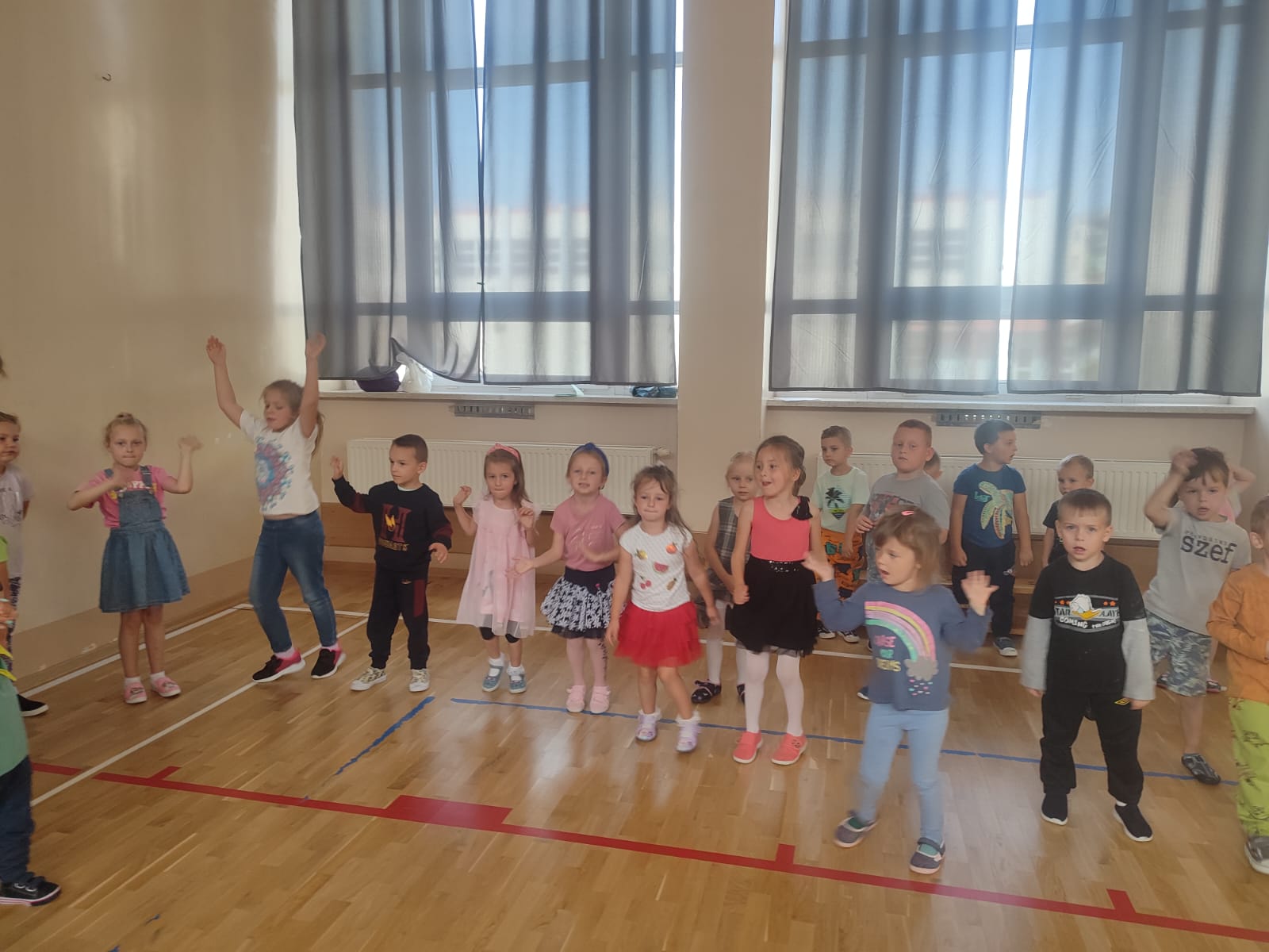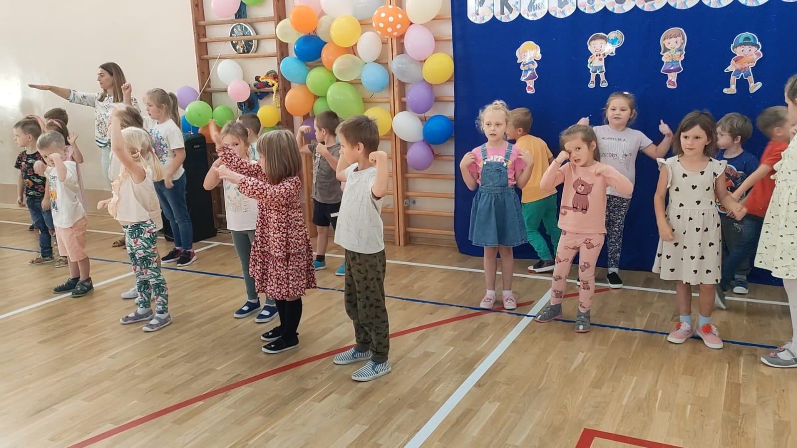 Muzyka, gwar i śmiech rozbrzmiewały od samego rana. Tego dnia czekało na dzieci mnóstwo atrakcji, zabaw ruchowych, piosenek i tańców w rytm najpopularniejszych dziecięcych przebojów. Radość i śmiech świadczyły o wspaniałej zabawie. Na koniec wspólnej zabawy dzieci chętnie pozowały w specjalnie przygotowanej foto – budce. To był dzień pełen wrażeń!
