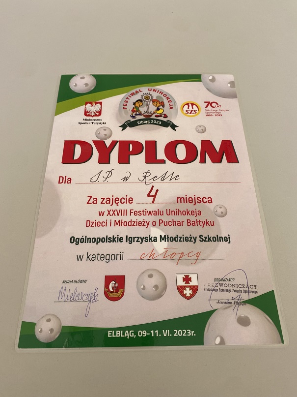 W dniach 9-11 czerwca br. uczniowie Szkoły Podstawowej im. Jana Pawła II w Redle w składzie: Oliwier Janaszek, Karol Hnatowicz, Adrian Kozłowski, Dominik Prochenka, Szymon Mariak, Patryk Szymczak, Wiktor Czajkowski, Mateusz Ogórek, Michał Smyła, Oliwier Arczewski, Gabriel Mazolewski, Michał Białek pod opieką trenera Pana Wojciecha Grobeli wzięli udział w Ogólnopolskim Turnieju Unihokeja w Elblągu. W turnieju udział wzięły drużyny z całej Polski. Dzięki wspaniałej grze reprezentantów drużyna zdobyła 4 miejsce w klasyfikacji ogólnej.