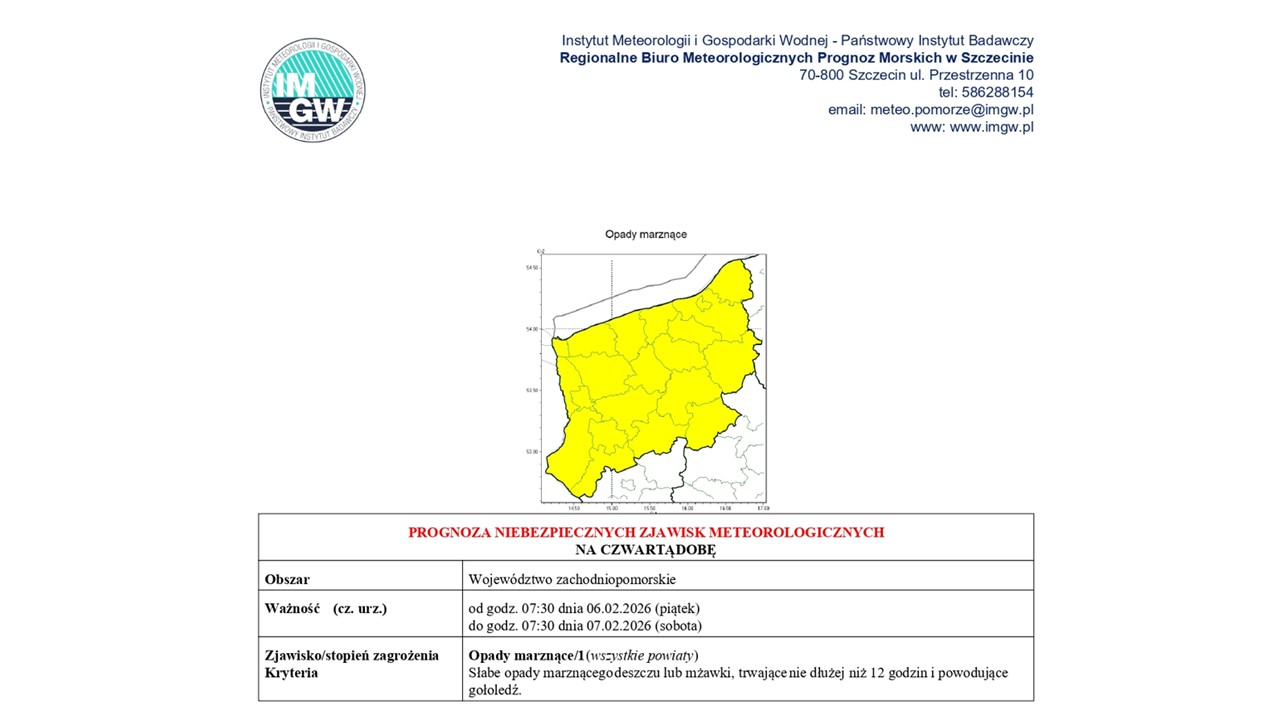 OSTRZEŻENIE METEOROLOGICZNE 02.02.2026 R.- 07.02.2026 R.