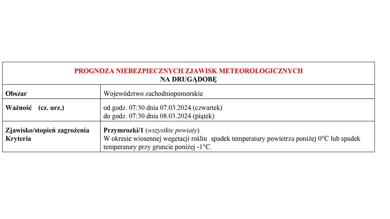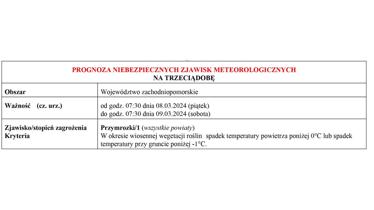 OSTRZEŻENIE METEOROLOGICZNE 07.03-09.03.2024 R.