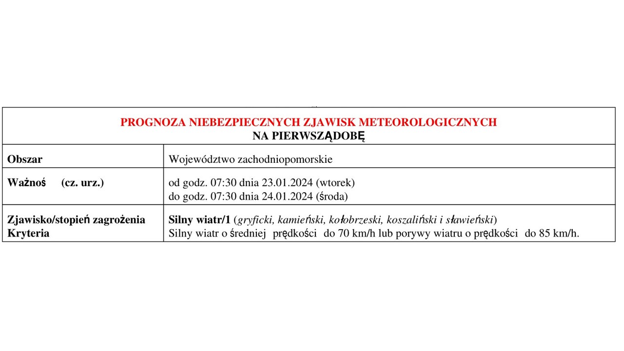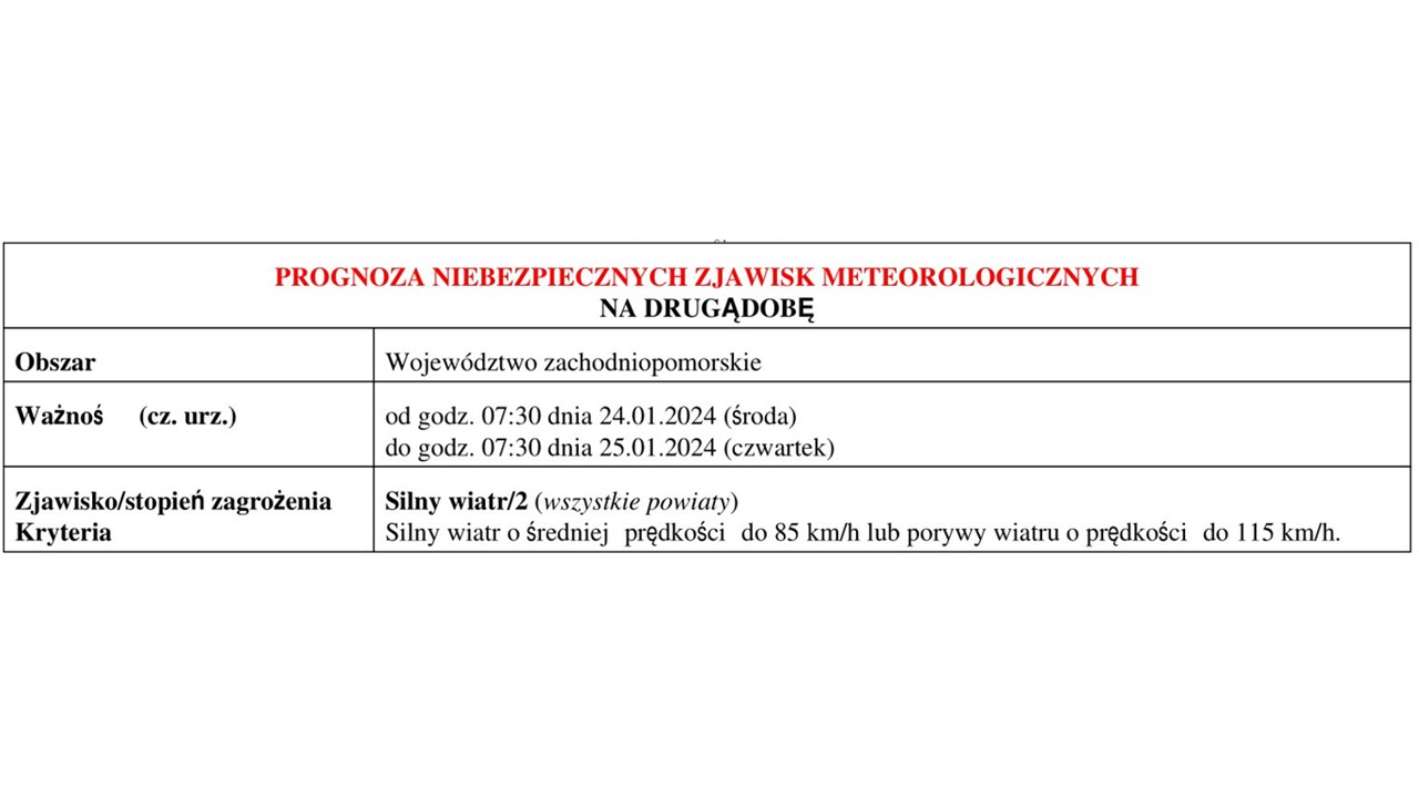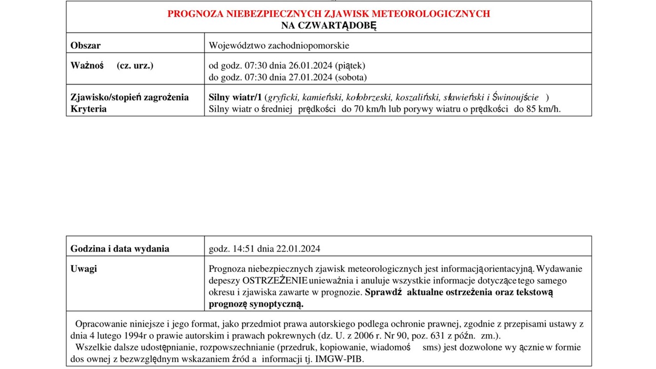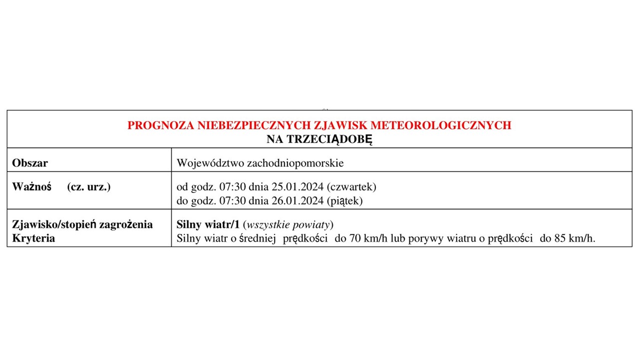 OSTRZEŻENIE METEOROLOGICZNE 23.01-27.01.2024 R.