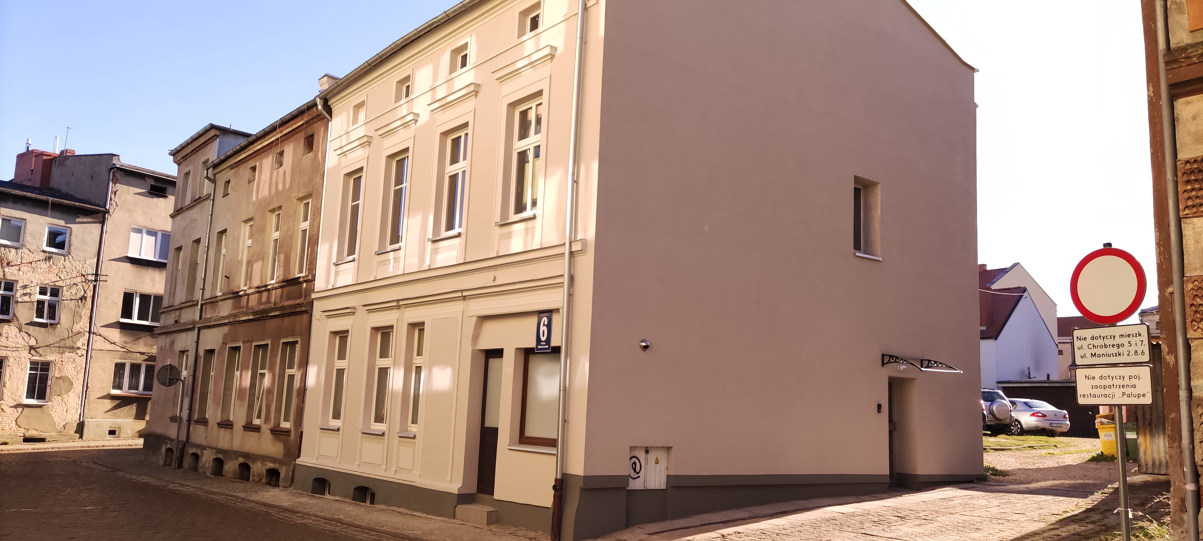 Mieszkanie przy ul. Moniuszki 6/2 ma swój klimat – w pobliżu przebiega brukowana uliczka, świecą stylowe latarnie. Ze względu na cenę i dużą powierzchnię powinno zainteresować młode rodziny. Wymaga remontu, jednak daje to potencjał do zrealizowania w nim wymarzonej, własnej aranżacji. Wewnątrz są piece kaflowe, jednak w budynku wykonano pion gazowy, dlatego lokal można łatwo i tanio do niego podłączyć.