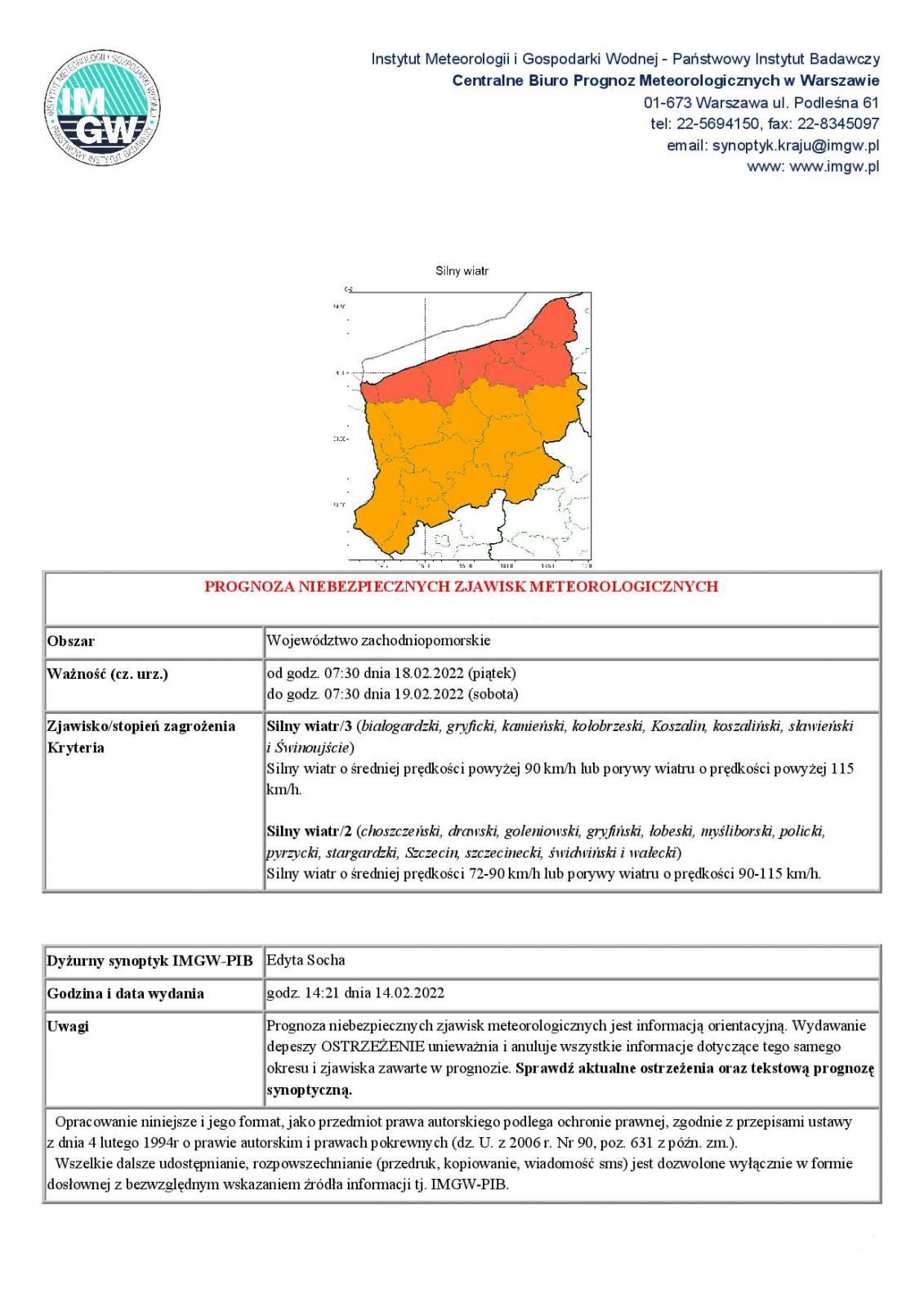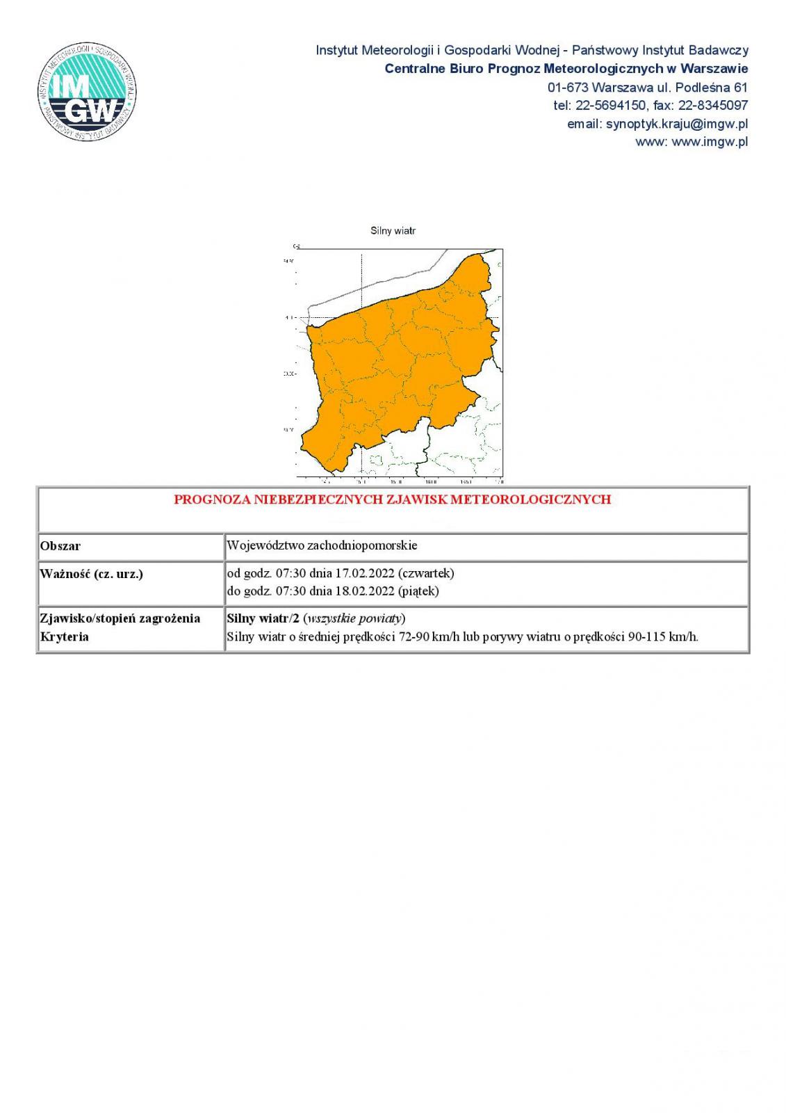 OSTRZEŻENIE METEOROLOGICZNE 20.02.2026 R.- 22.02.2026 R.