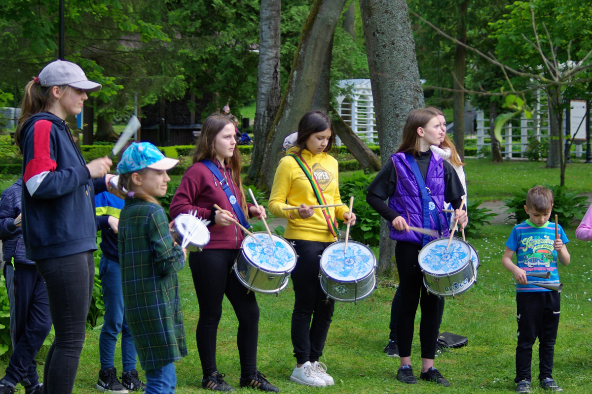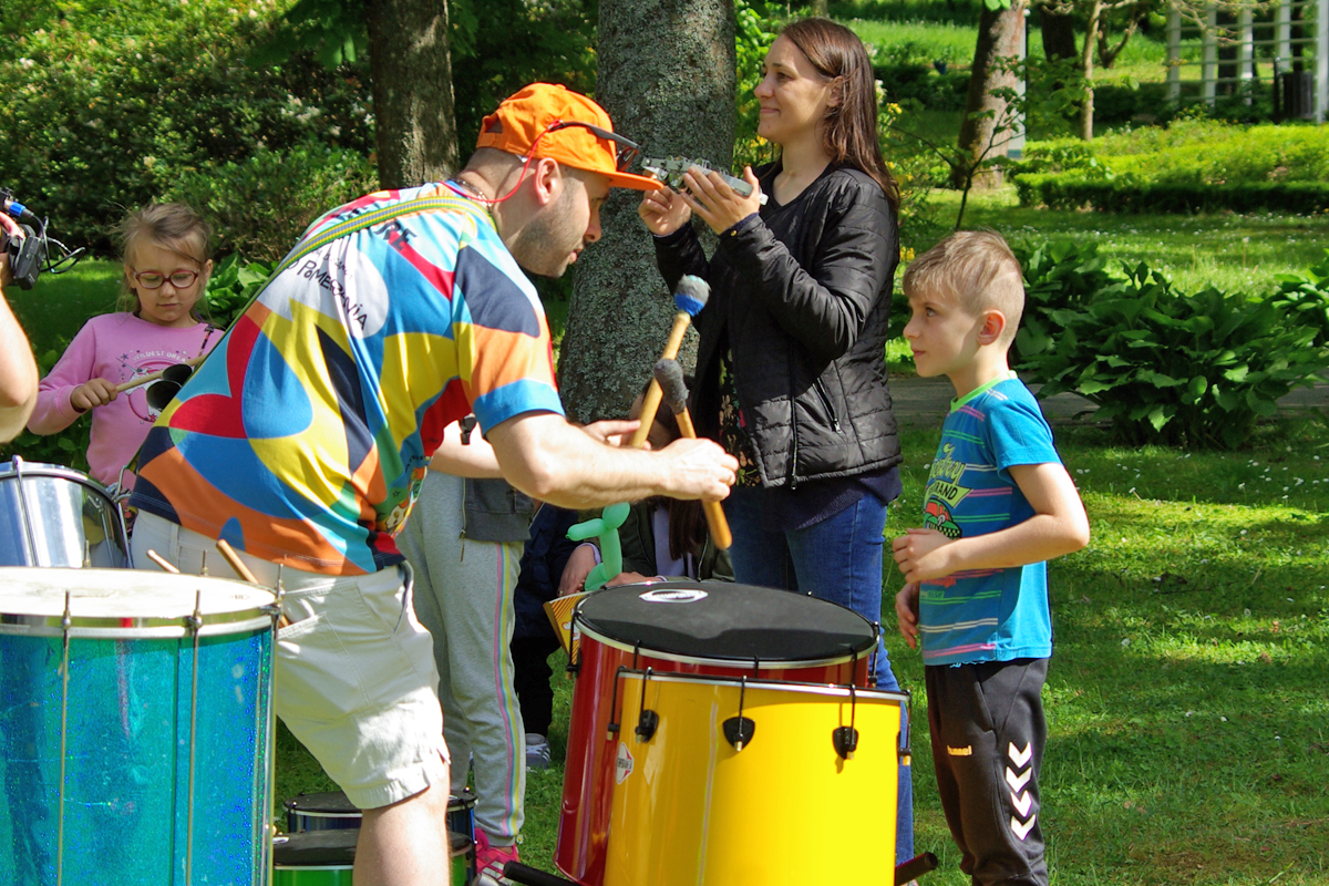 W ramach festynu prowadzone były także warsztaty gry na brazylijskich bębnach “Samby batucady”, których uczestnicy przygotowywali się do wspólnego występu 3 lipca z okazji otwarcia Magicznej Ulicy Parasoli.