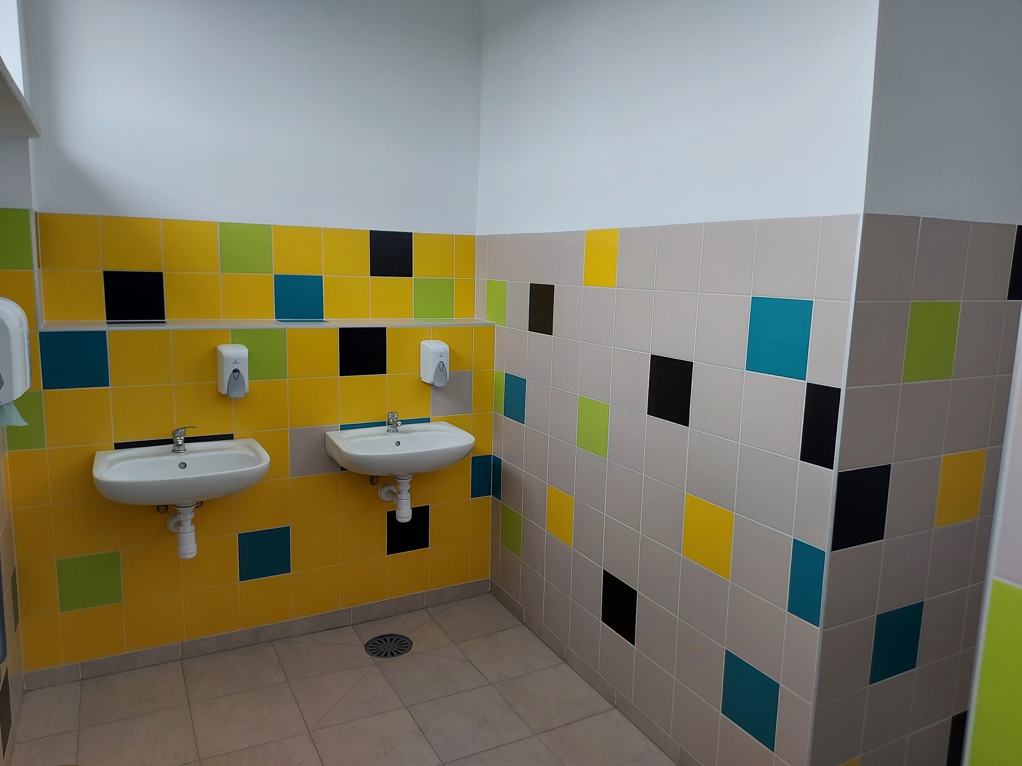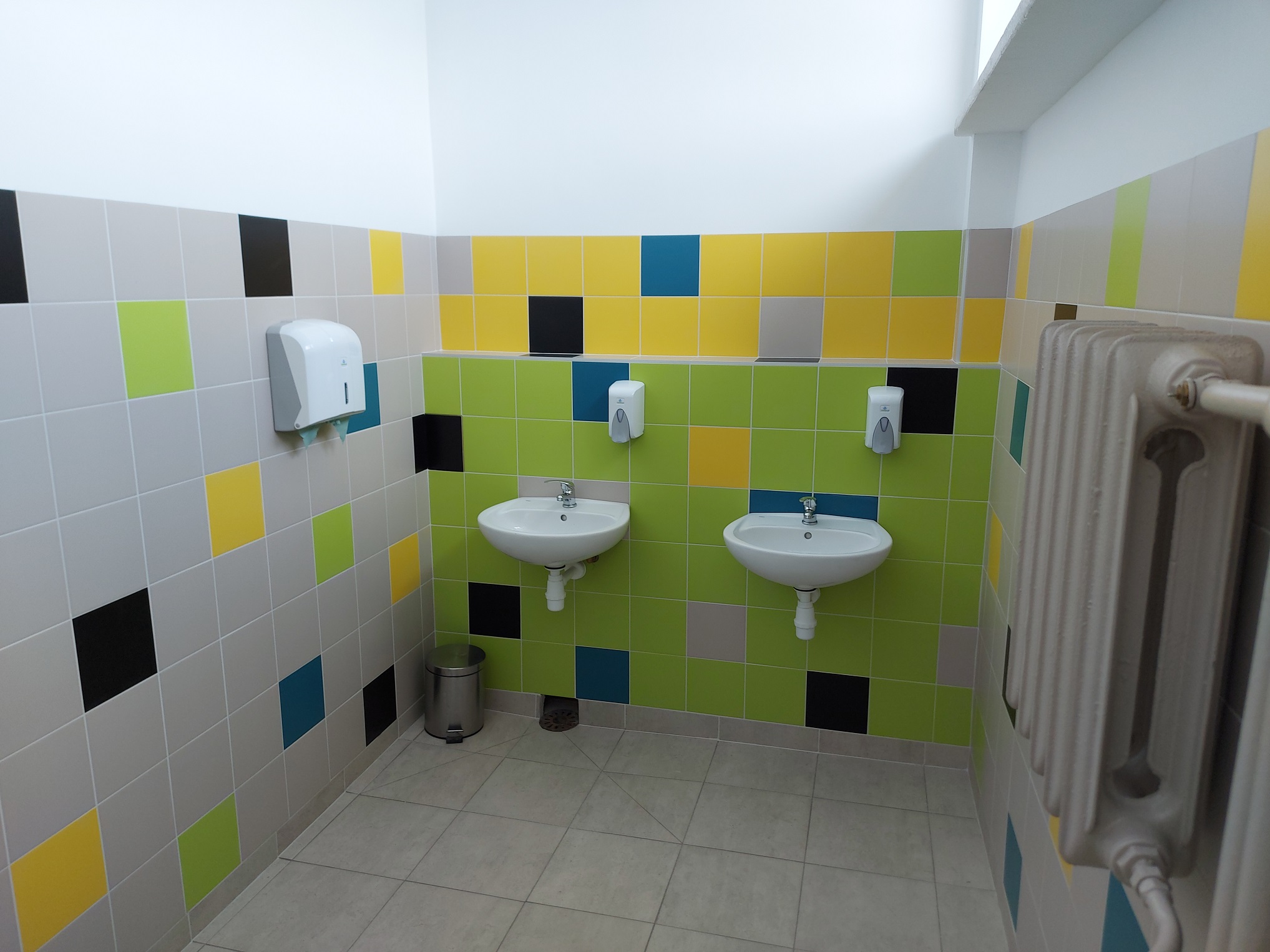 Jeszcze pod koniec ubiegłego roku kalendarzowego rozpoczęto remonty łazienek, z których korzystają uczniowie. W pierwszej kolejności wyremontowano łazienkę dla dziewcząt, chłopców oraz WC personelu na drugim piętrze bloku, gdzie znajdują się sale lekcyjne.
