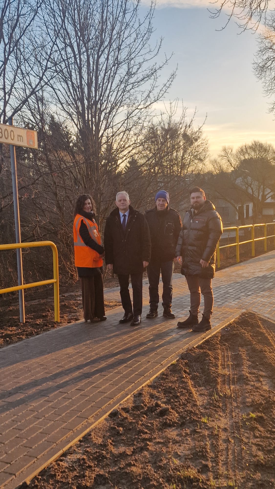 Roboty wykonano na odcinku od przepustu do ścieżki rowerowej o łącznej długości 322 mb. Istniejący chodnik został rozebrany, a następnie wybudowany na nowo o szerokości 2,0 m z szarej kostki brukowej typu Polbruk. Dodatkowo, na odcinku o długości 80 m, zamontowano bariery drogowe.