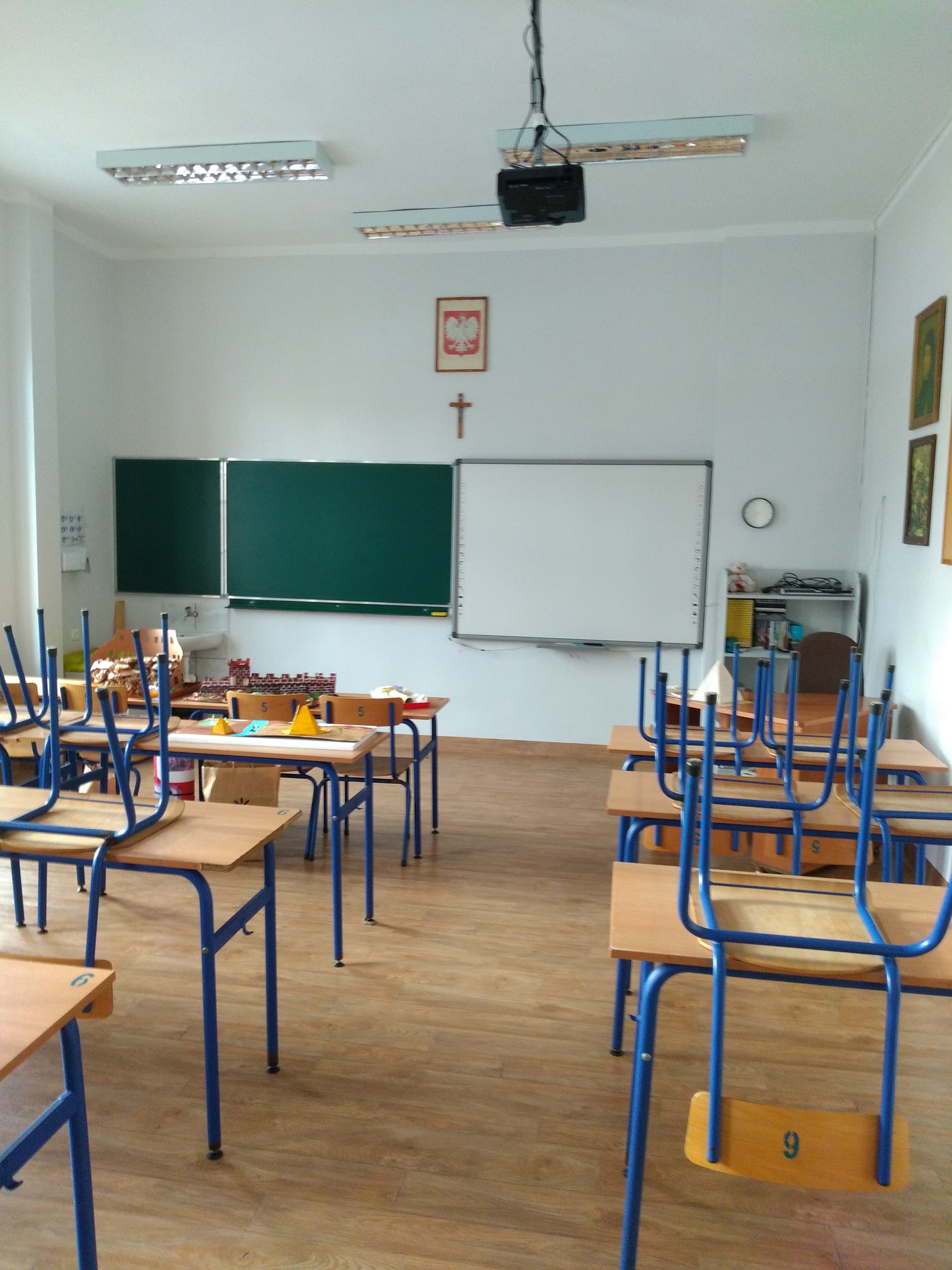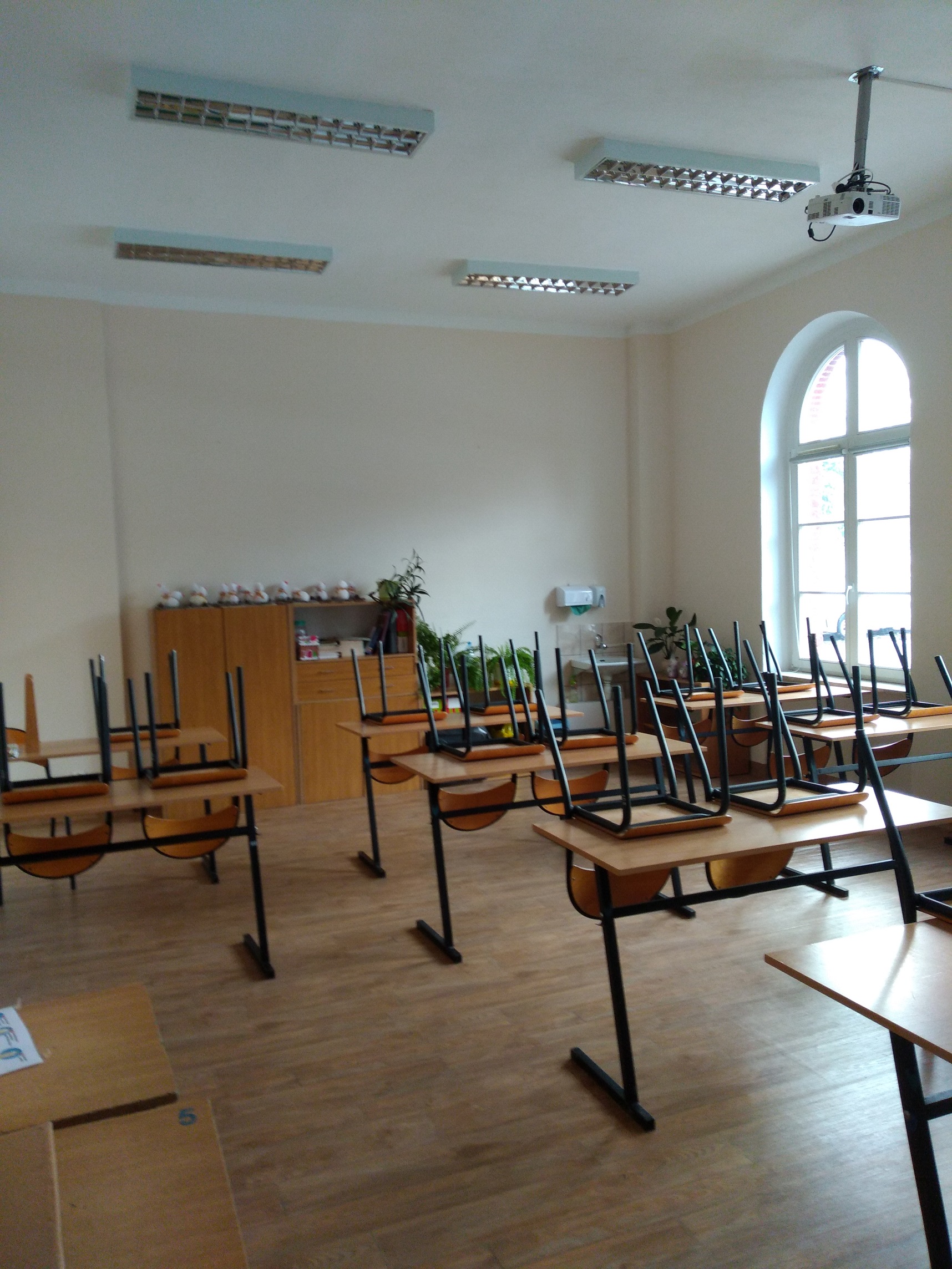 Tuż po zimowych feriach na parterze budynku głównego położono jasną, homogeniczną wykładzinę. Ze względu na trwający lockdown wyremontowano kolejne pomieszczenia, które znalazły się w wykazie klasopracowni wskazanych przez nadzór budowlany do remontu. I tak pomalowano i wymieniono wykładziny w archiwum oraz pracowniach: fizycznej, historycznej (8) i integracyjnej (7). Pomalowano również pracownię matematyczną (12) oraz językową (21). Obecnie prace trwają w pracowniach matematycznej (20) oraz zaplanowane są w matematycznej (25) oraz językowej (23).