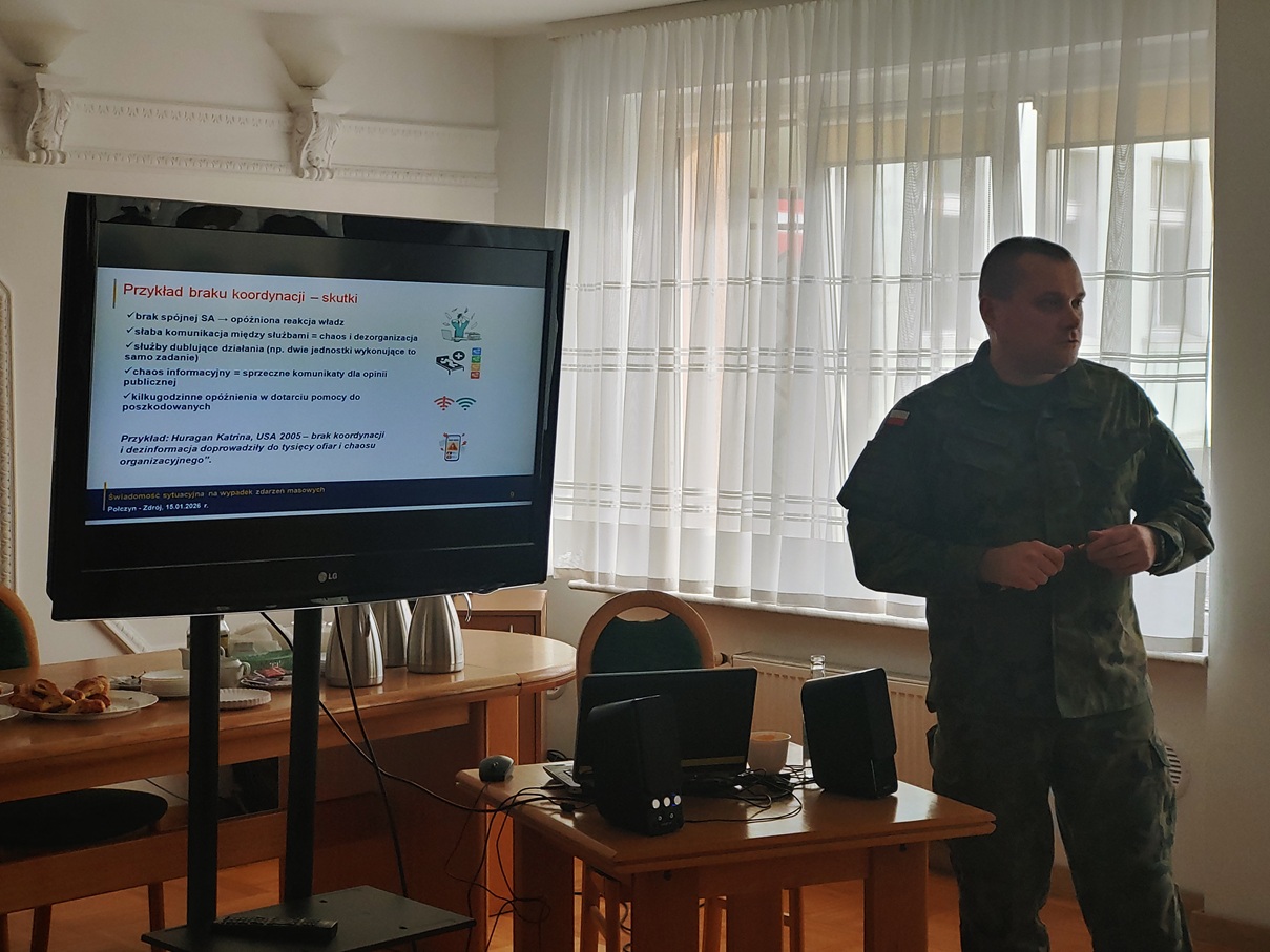 W dniu 15 stycznia 2026 r. w Urzędzie Miejskim w Połczynie-Zdroju odbyło się szkolenie mające na celu przygotowanie samorządowców do zarządzania kryzysowego oraz realizacji pozamilitarnych przygotowań obronnych. Organizatorem wydarzenia było Wojskowe Centrum Rekrutacji w Kołobrzegu WCR Kołobrzeg, a szkolenie poprowadził kpt. Paweł Krzesiński.