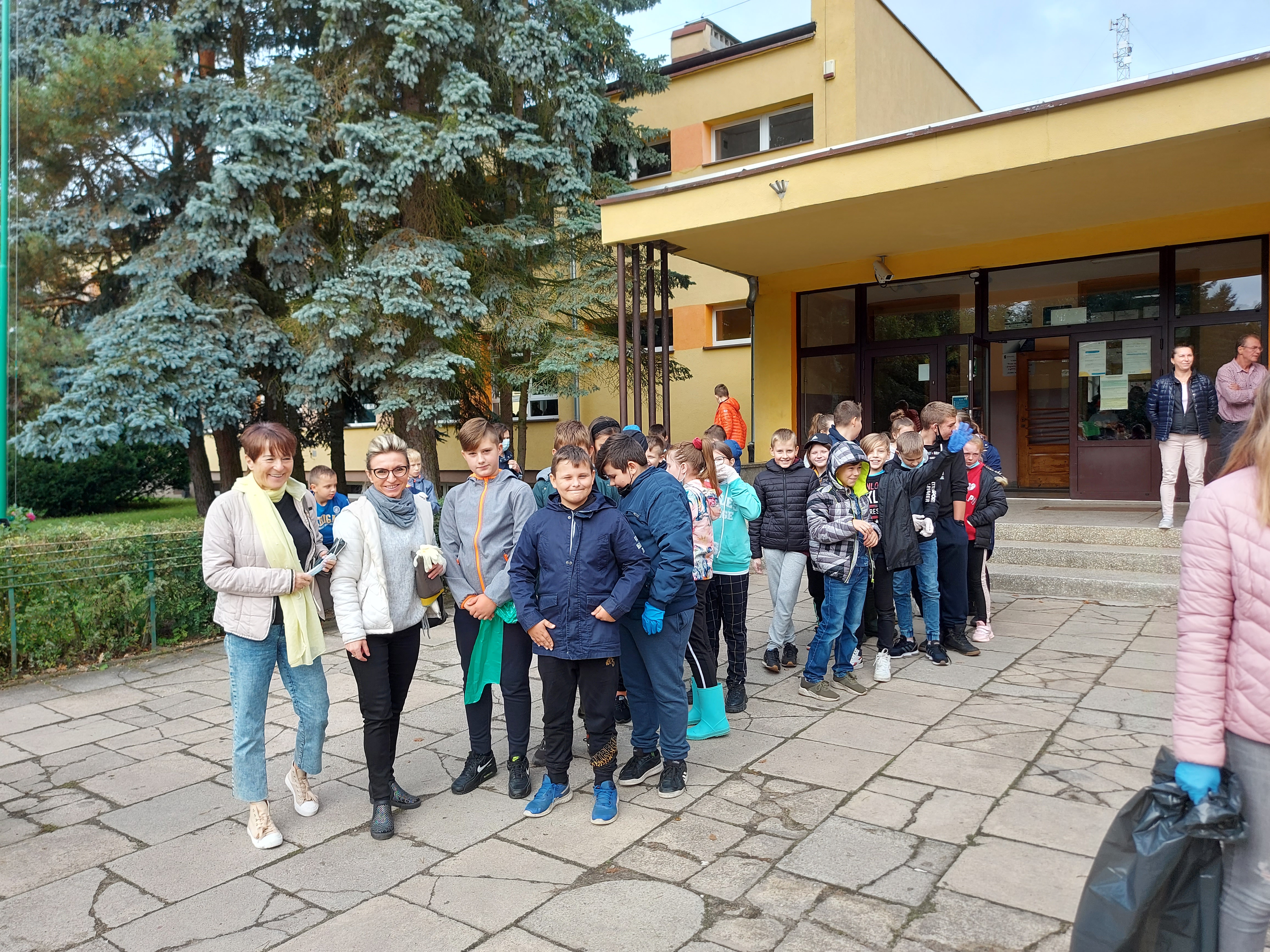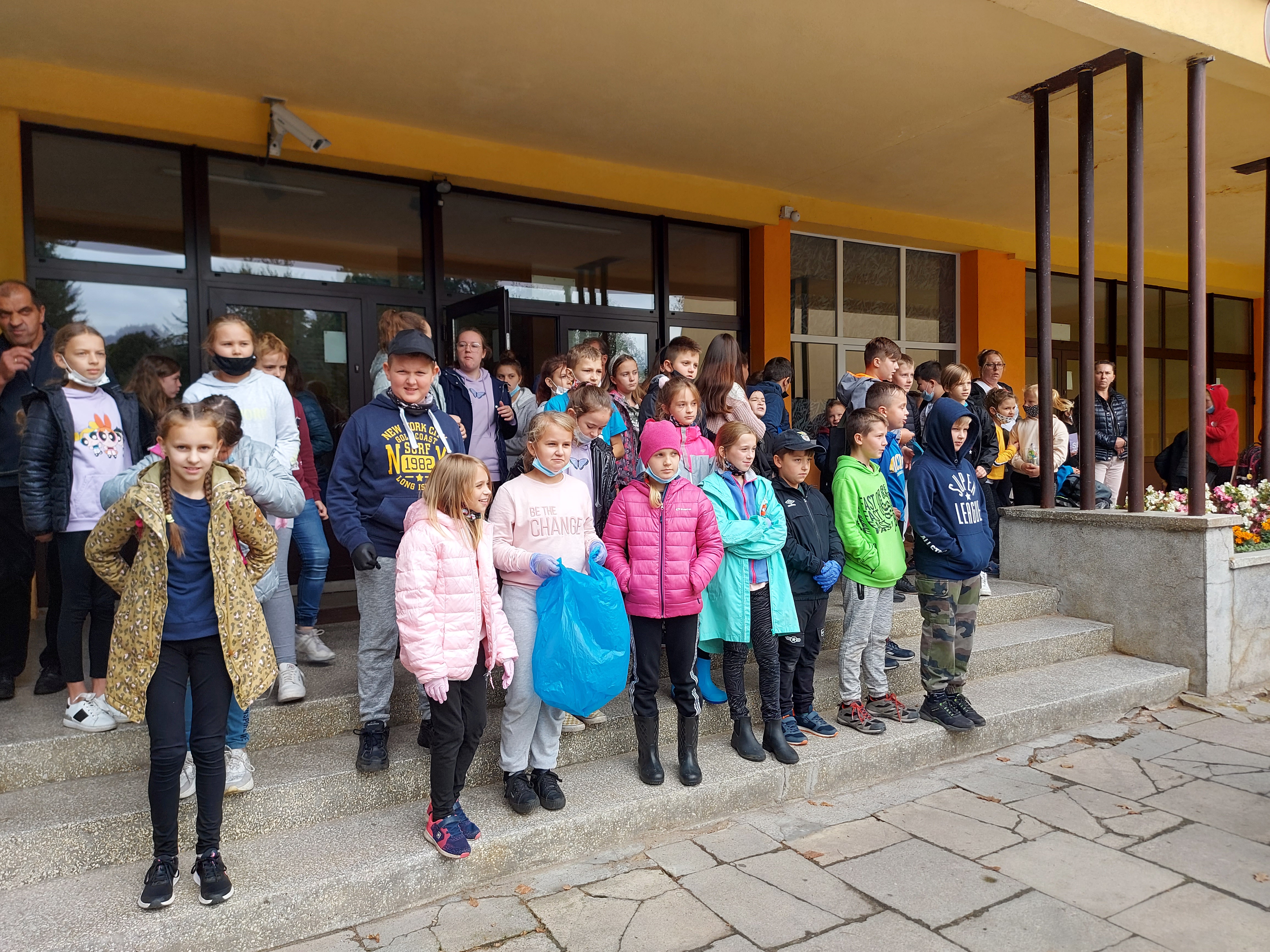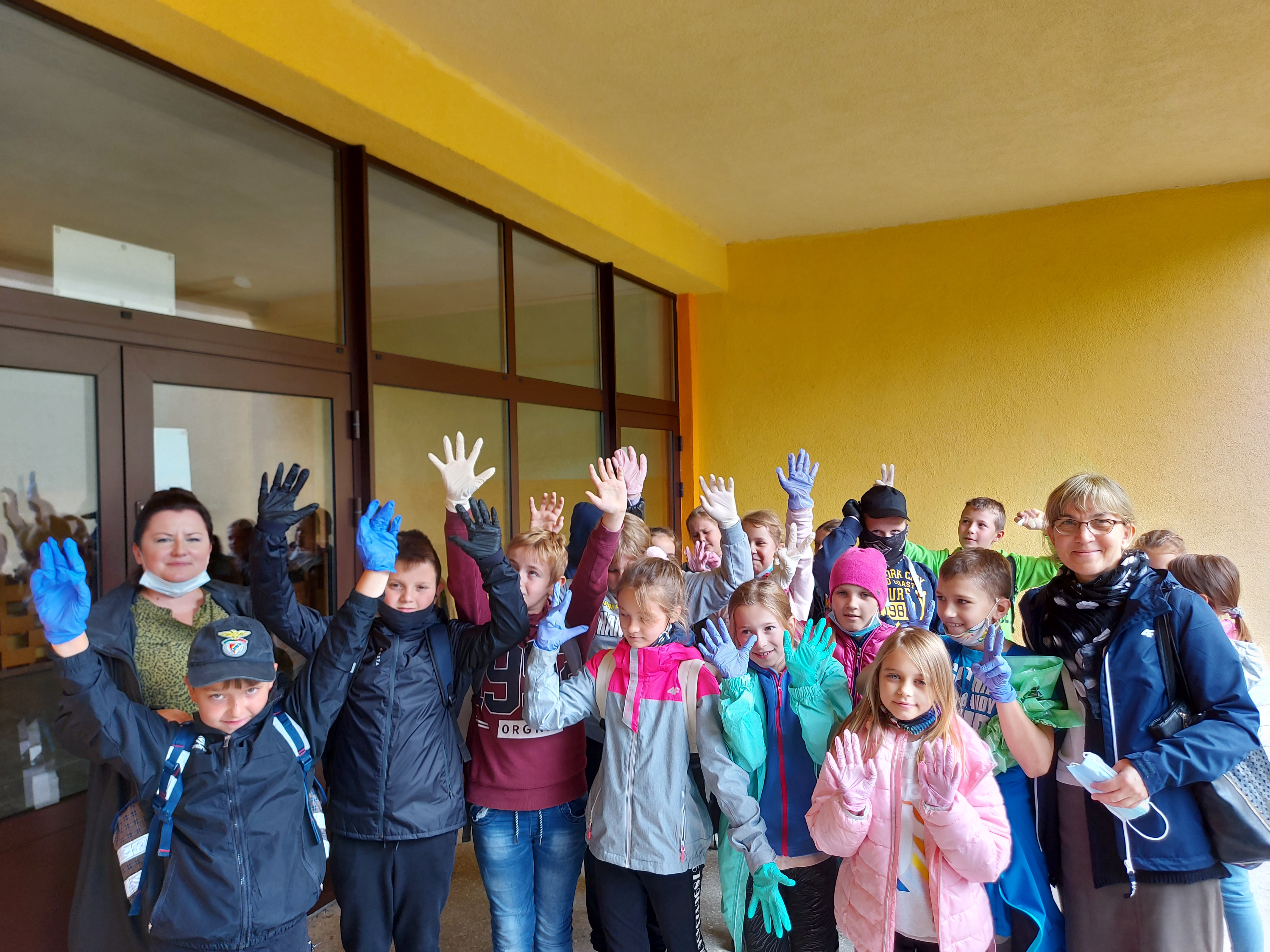 W tym samym czasie uczniowie z klas młodszych uczestniczyli w akcji sprzątania świata. Każde dziecko wyposażone zostało w ochronne rękawiczki oraz worki do segregacji odpadów. Grupy uczniów wraz z opiekunami udały się w wyznaczone do uprzątnięcia obszary, dzięki czemu chodniki oraz tereny zielone w Redle cieszą oko. Czas, po wielkim sprzątaniu uczniowie spędzili przy ognisku, piekąc kiełbaski.