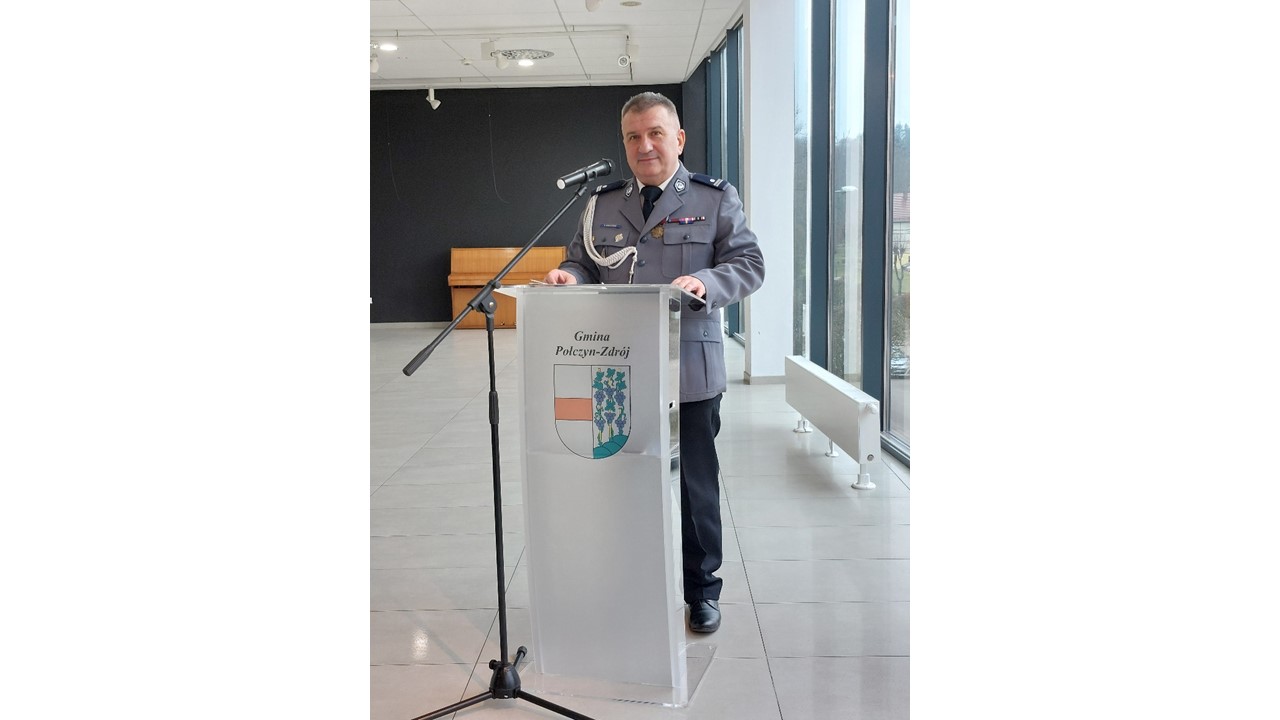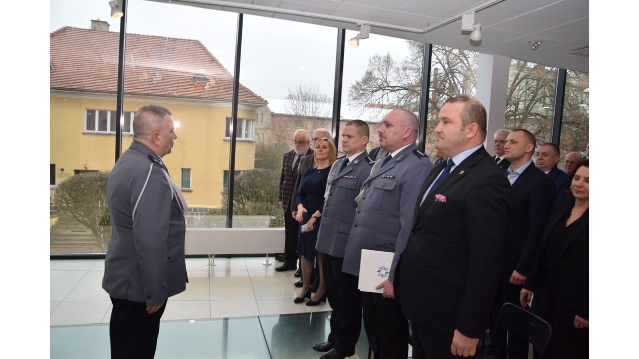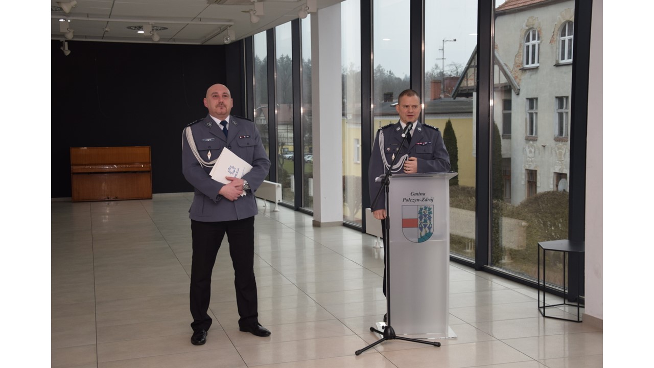 UROCZYSTE POŻEGNANIE ZE SŁUŻBĄ KOMENDANTA KOMISARIATU POLICJI W POŁCZYNIE-ZDROJU PODINSP. TOMASZA MOŻDŻENIA