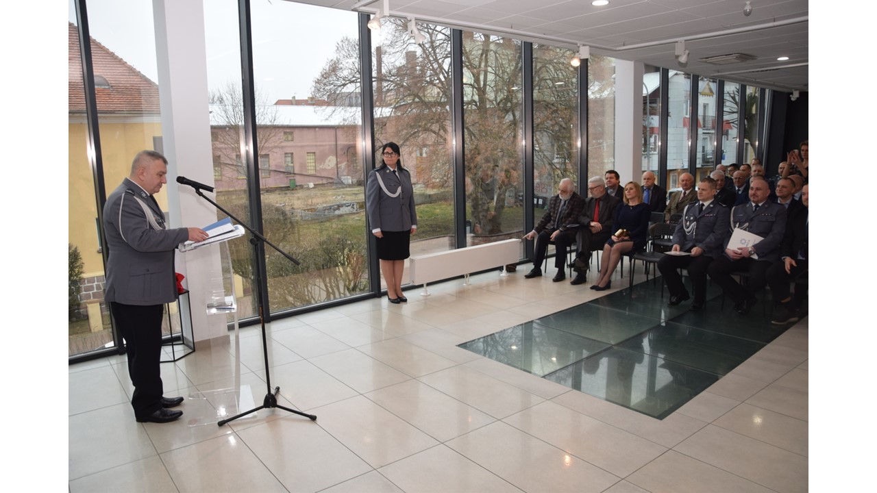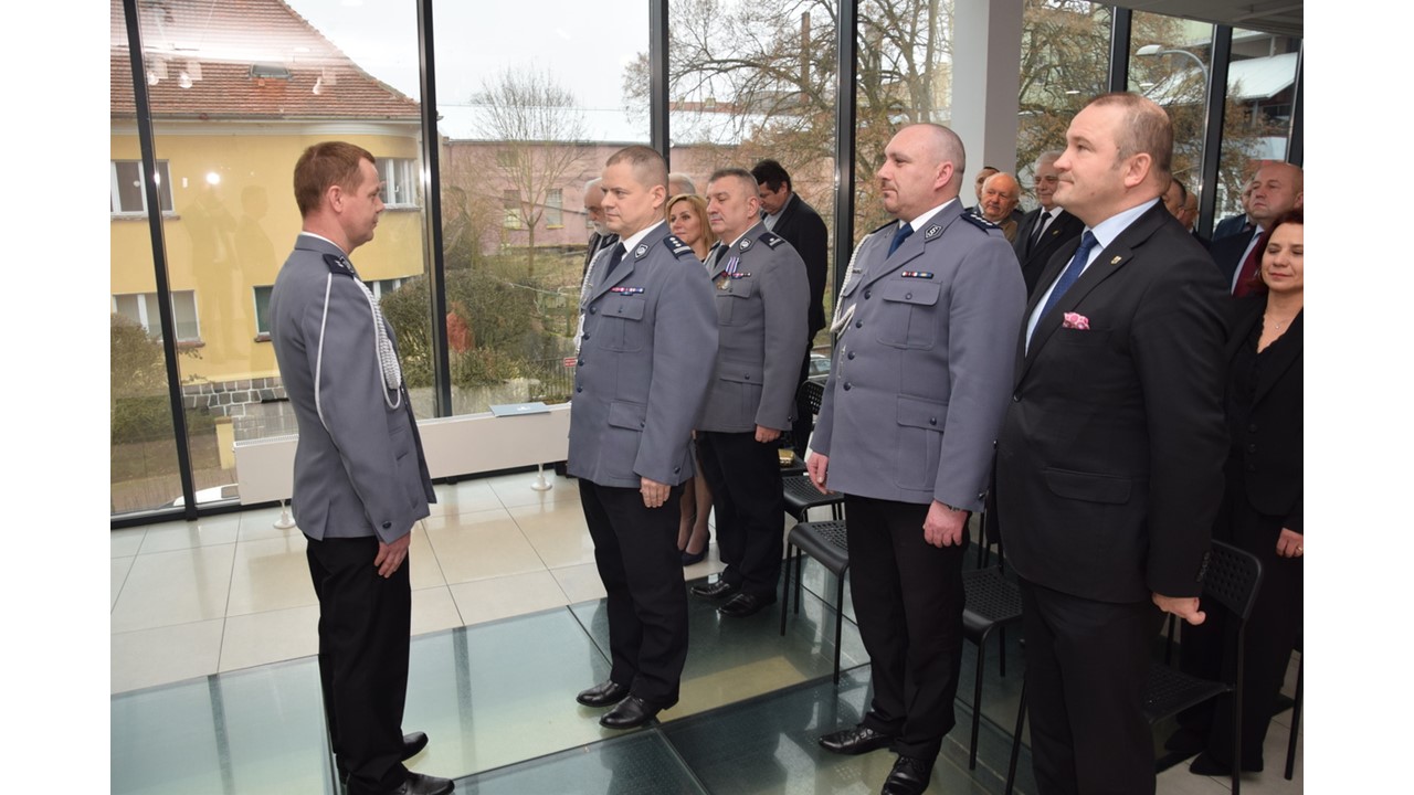 Powitanie wszystkich uczestników tradycyjnie poprzedziło złożenie Komendantowi Powiatowemu Policji insp. Łukaszowi Chruścielowi uroczystego meldunku przez dowódcę uroczystości podkom. Wiesława Dynka a następnie wprowadzono sztandar jednostki. W dalszej kolejności odczytano rozkaz o zwolnieniu ze służby podinsp. Tomasza Możdżenia ze stanowiska Komendanta Komisariatu Policji w Połczynie-Zdroju. Odchodzący na emeryturę pożegnał się ze sztandarem i złożył meldunek insp. Łukaszowi Chruścielowi o zdaniu obowiązków służbowych.
