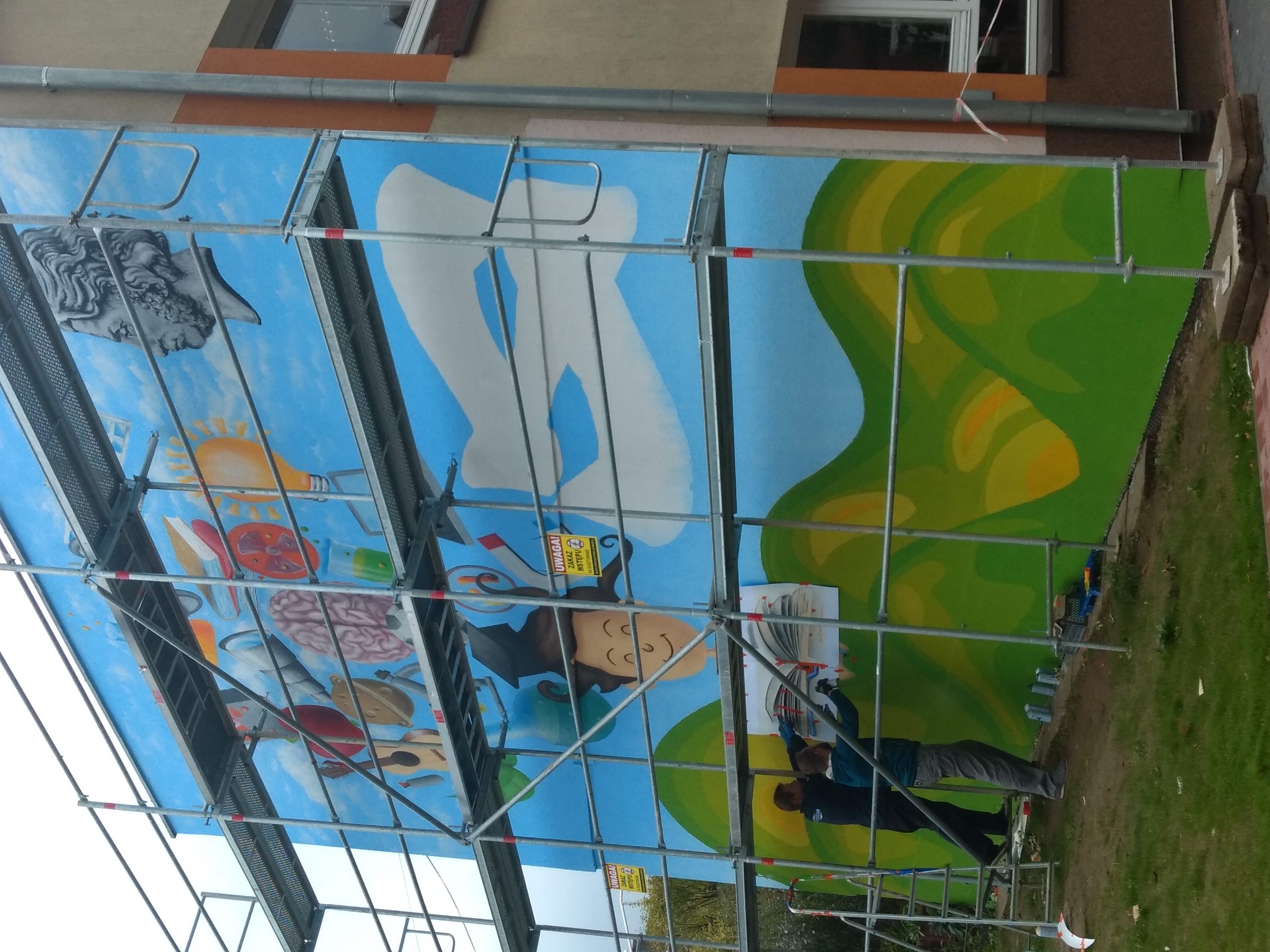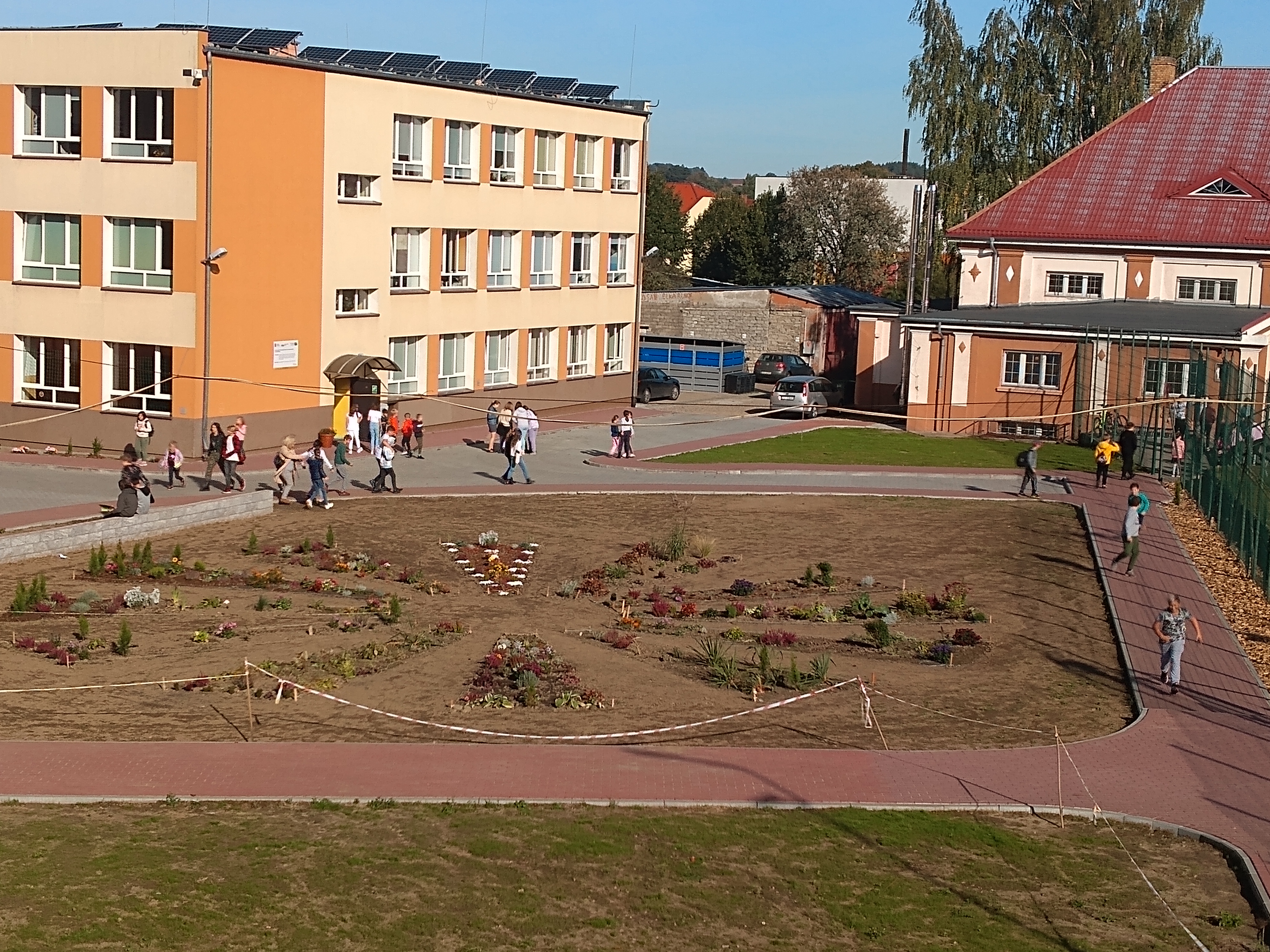 Podczas tych prac rozebrano zniszczoną nawierzchnię, położono chodniki z kostki betonowej, ustawiono obrzeża i krawężniki, następnie dowieziono urodzajną ziemię, na której uczniowie w ramach ogłoszonego konkursu posadzili rośliny. Obecnie trwają prace przy tworzeniu muralu na jednej ze ścian łącznika z budynkiem głównym szkoły. Wykonawcą projektu jest Dawid Stegienka, natomiast środki na wykonanie projektu pochodzą z bonu podarunkowego z okazji jubileuszu 75 – lecia Szkoły Podstawowej nr 1 zasponsorowanego przez Burmistrza Połczyna – Zdroju Sebastiana Witka.