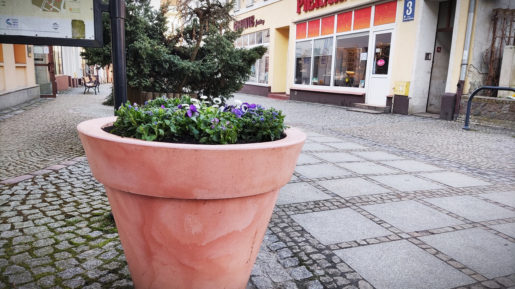 Donice przy ulicy Grunwaldzkiej, rabata oraz klomby również w wiosennej odsłonie. To Połczyn-Zdrój na początku kwietnia 2021 r.!