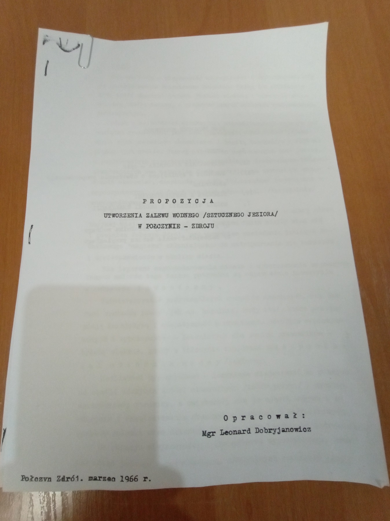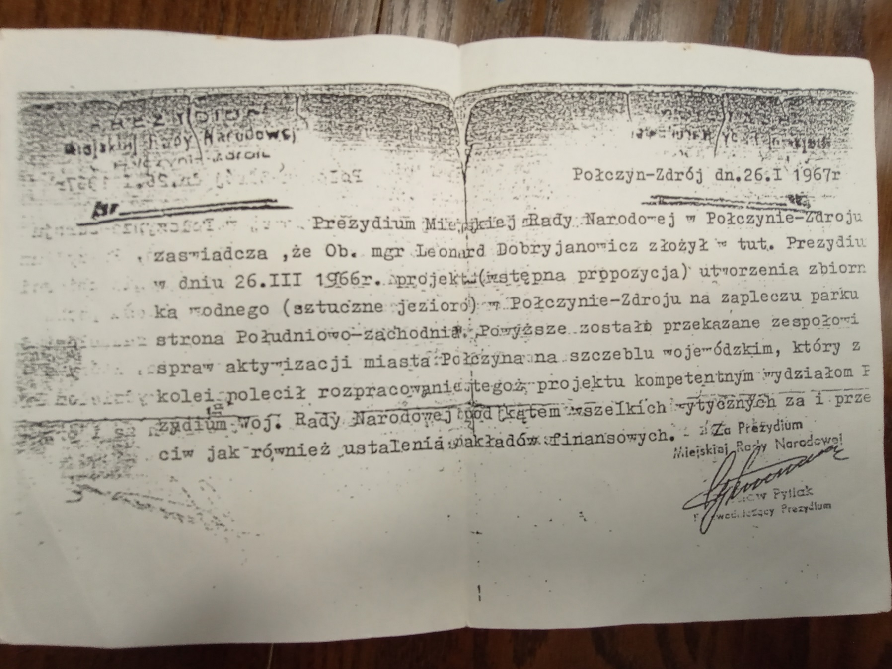 Pan Leonard pomysł swój spisał i zaniósł do Prezydium Miejskiej Rady Narodowej w Połczynie-Zdroju już dawno temu, bo 26 marca 1966 roku! Kilka lat wcześniej zamieszkał w tym mieście, a jego życie jest tak interesujące, że nadaje się na niejeden scenariusz filmowy. W tym roku będzie obchodził 90-te urodziny.