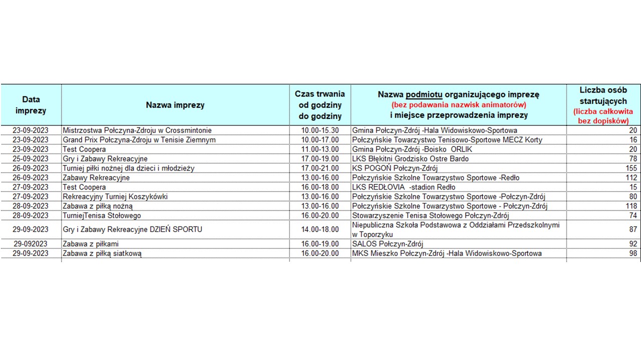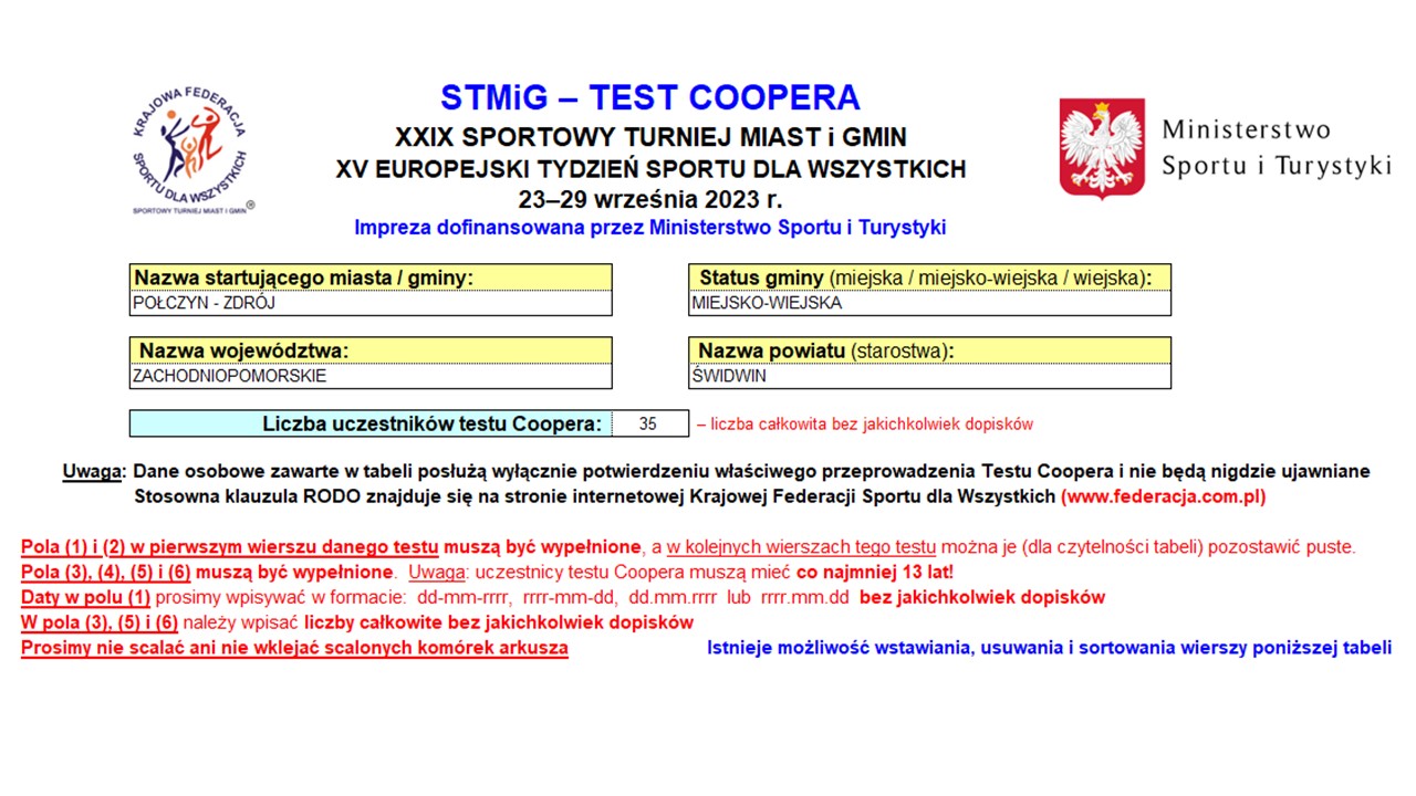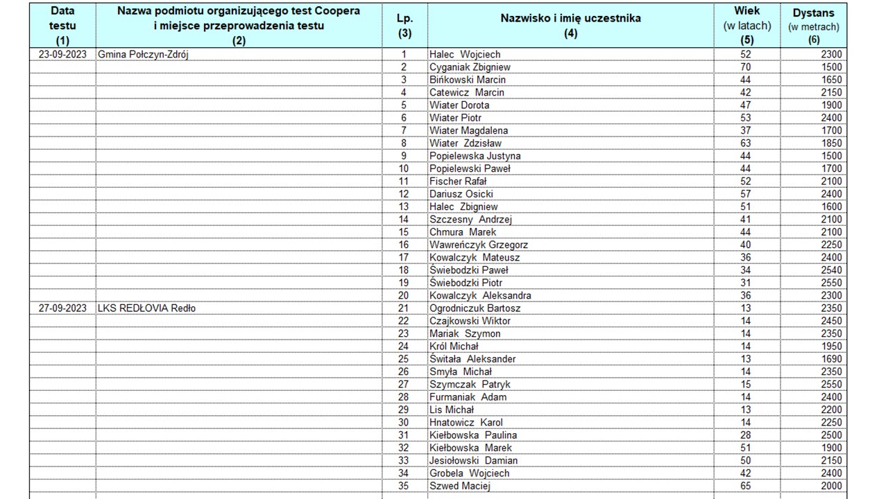 Przedstawiamy wyniki Testu Coopera oraz sprawozdanie z przeprowadzonych imprez sportowych.