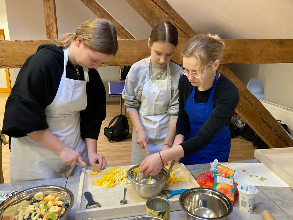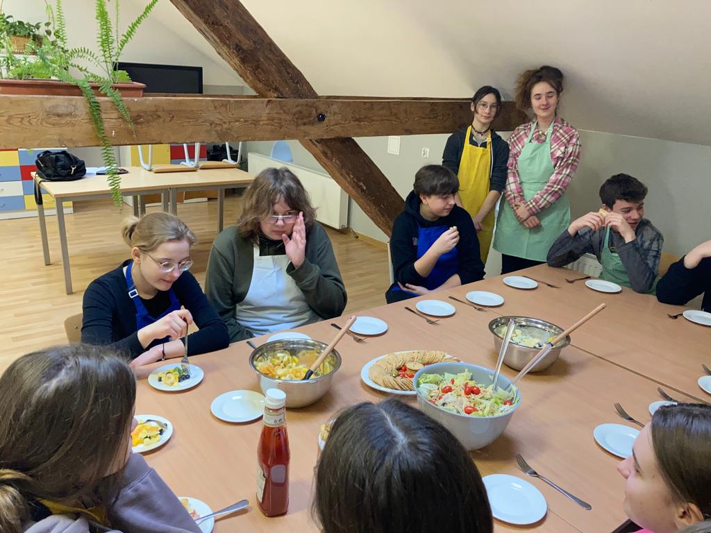 W ramach programu „Laboratoria Przyszłości” klasa 8a Szkoły Podstawowej nr 1 im. Adama Mickiewicza w Połczynie-Zdroju spędziła smacznie poniedziałkowy poranek, przygotowując posiłki pełne smaku i witamin pod okiem wychowawczyni Aleksandry Ziętkiewicz. Uczniowie pracowali w 3 grupach i przygotowali tosty, sałatki warzywne i owocowe oraz wykwintne zawijasy z ciasta francuskiego.  Wspólne gotowanie dostarczyło im dużo radości, a brzuchy napełnili nie tylko uczniowie, lecz również pracownicy szkoły.