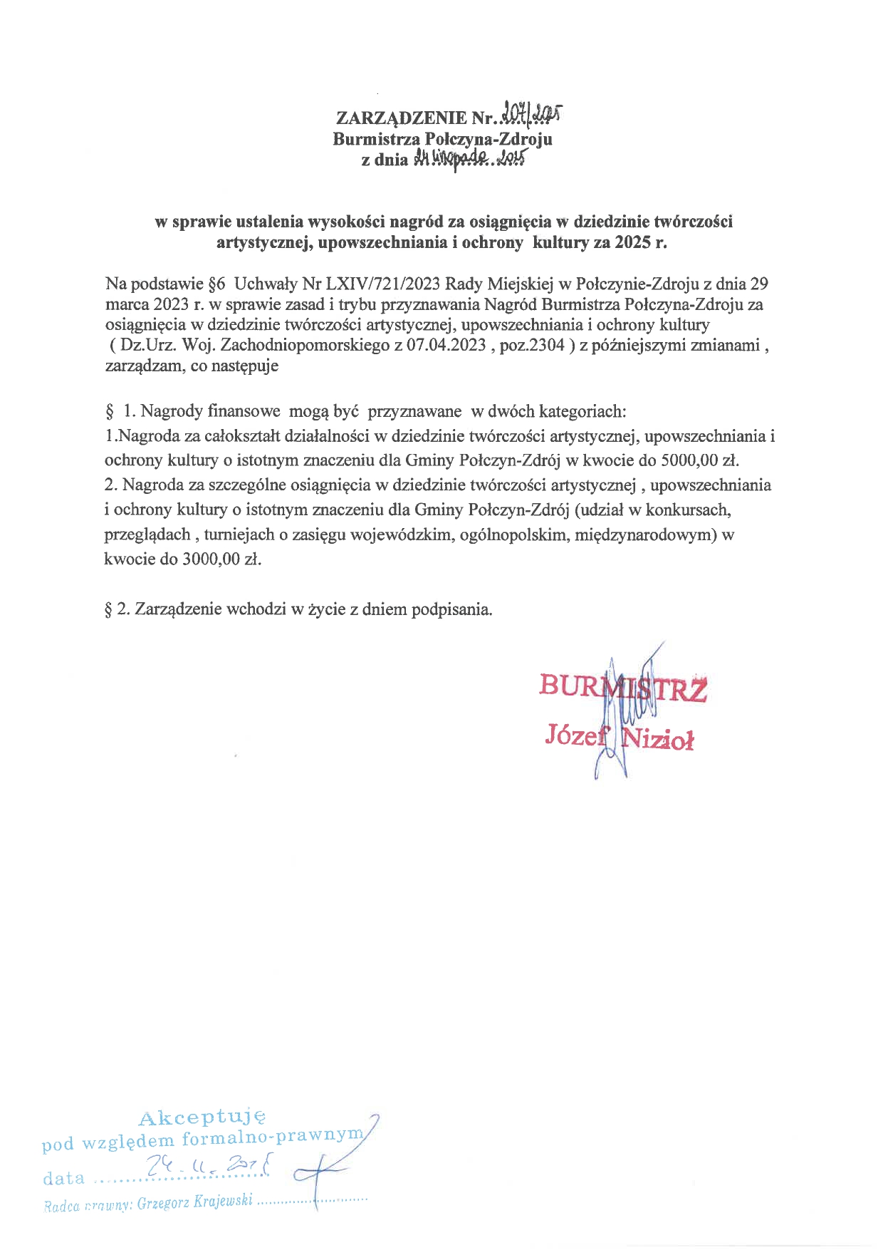 Nagrody Burmistrza Połczyna-Zdroju za osiągnięcia w dziedzinie twórczości artystycznej, upowszechniania i ochrony kultury